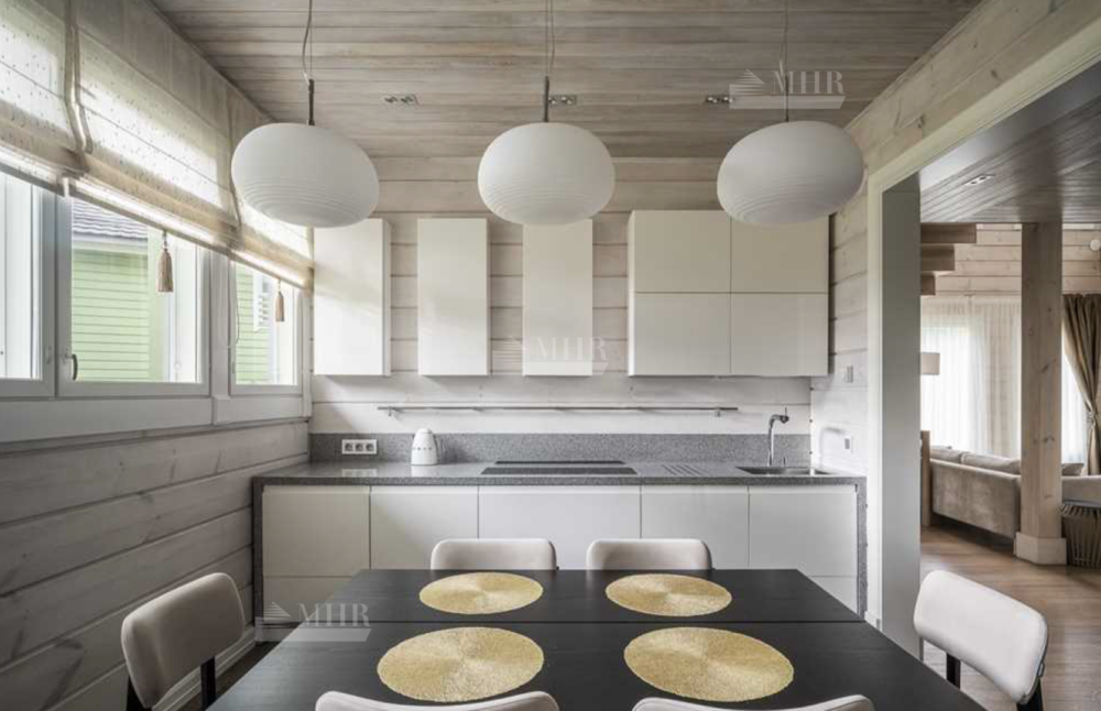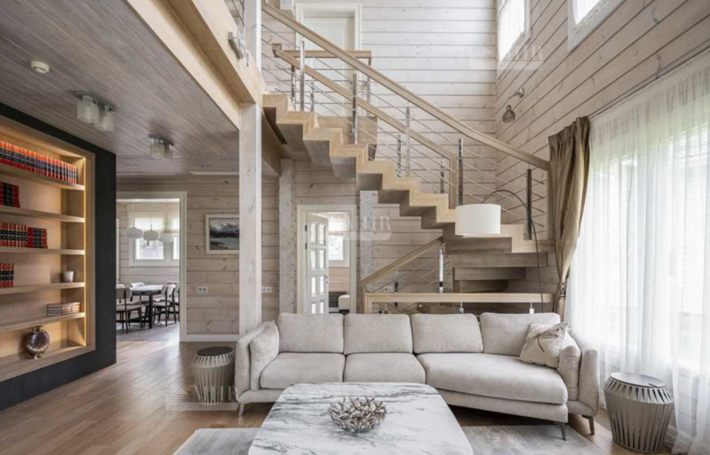 Этот просторный и светлый дом воплощает в себе уют и природную теплоту натурального дерева, создавая атмосферу спокойствия и комфорта. Безупречная отделка и продуманные архитектурные решения делают его идеальным для большой семьи или тех, кто ценит комфорт и стиль.