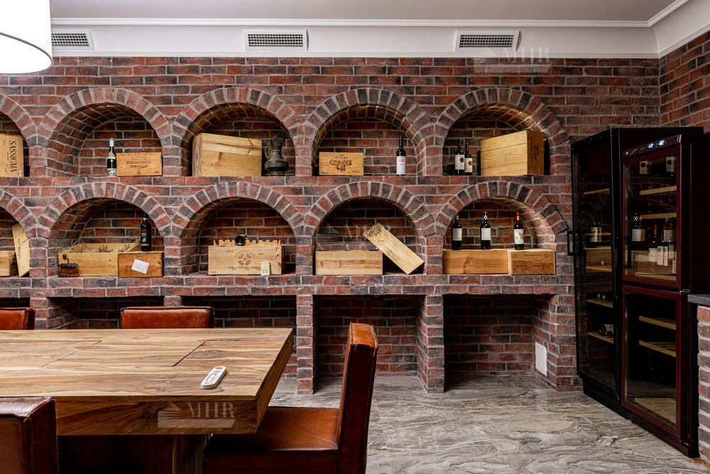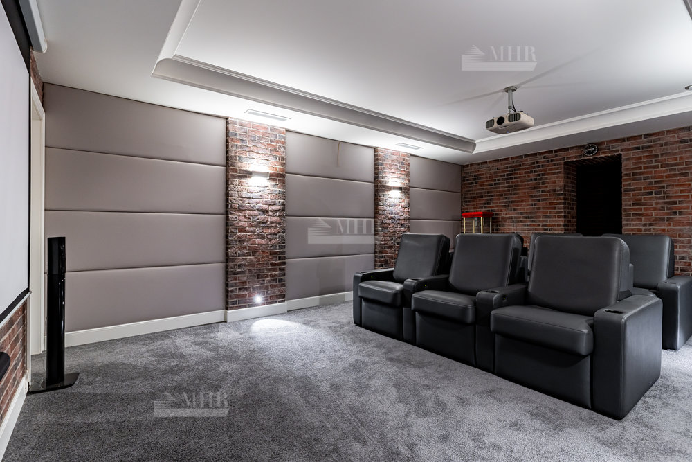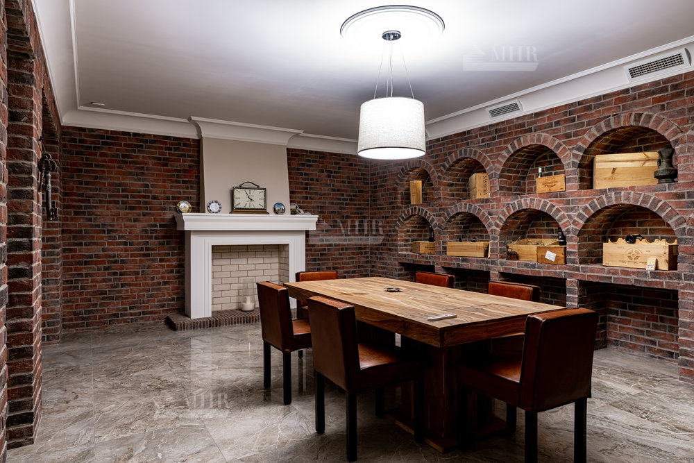 Цоколь: душевая, санузел, купель, винная комната, гардеробная (3 шт.), кинотеатр, кладовая (3 шт.), комната отдыха, котельная, постирочная;
