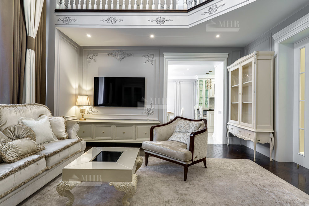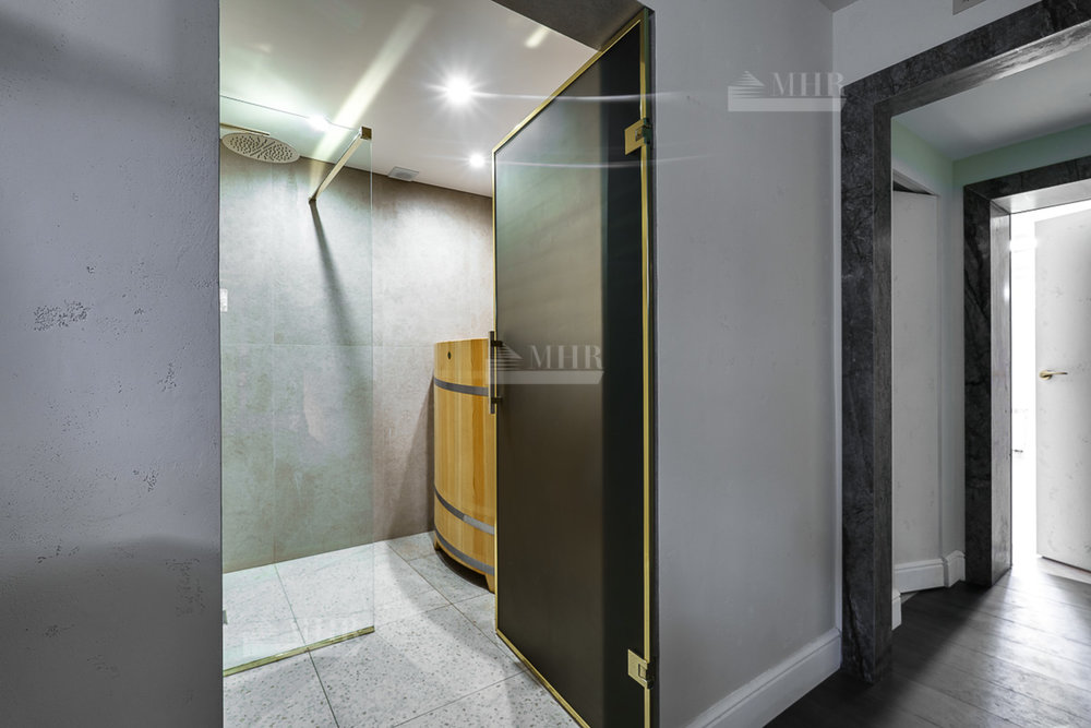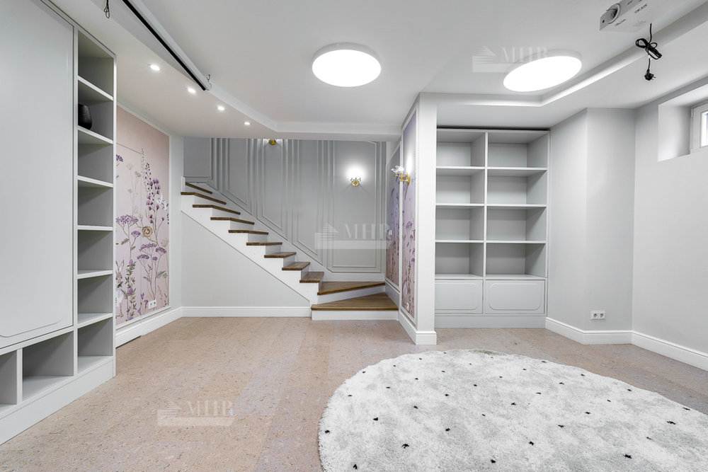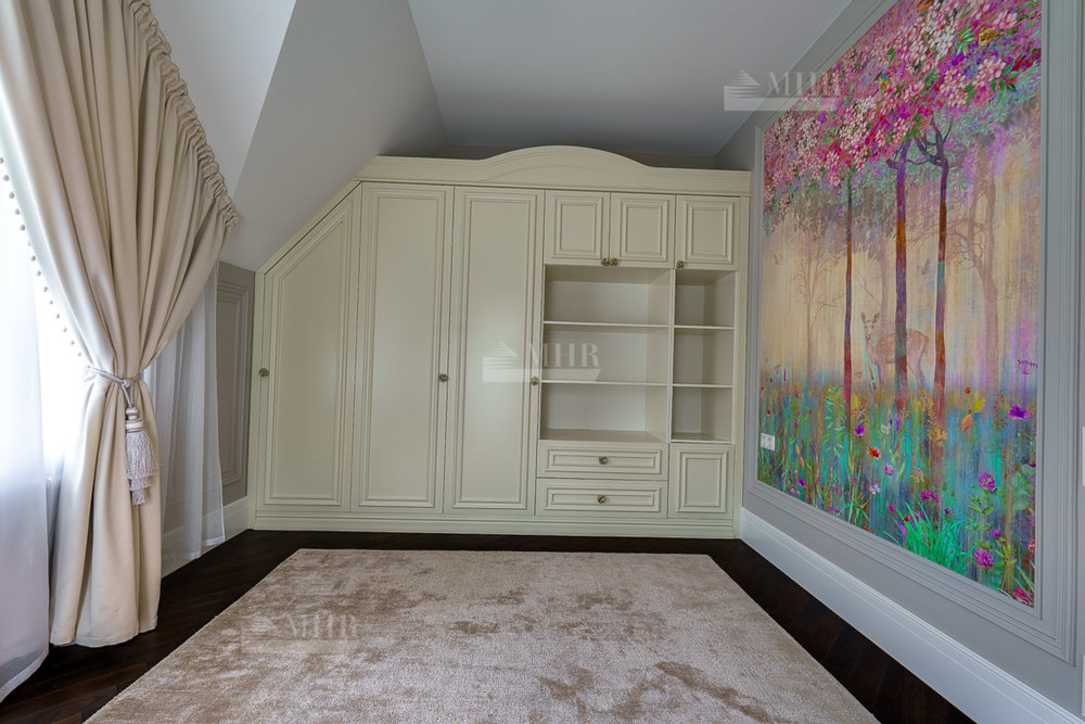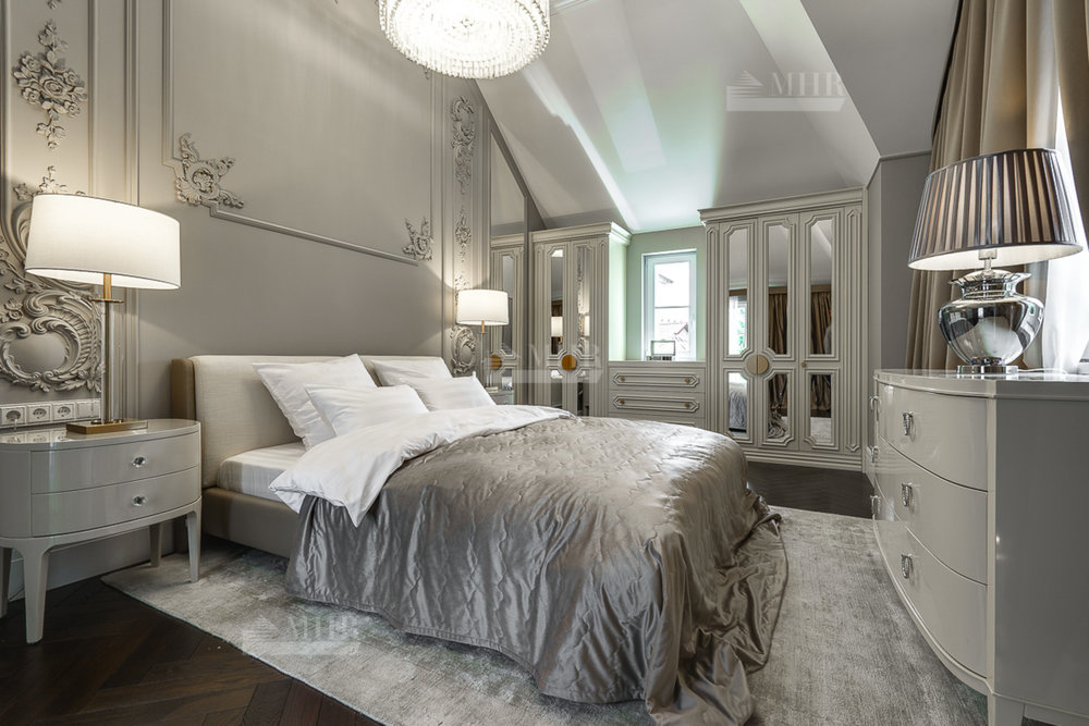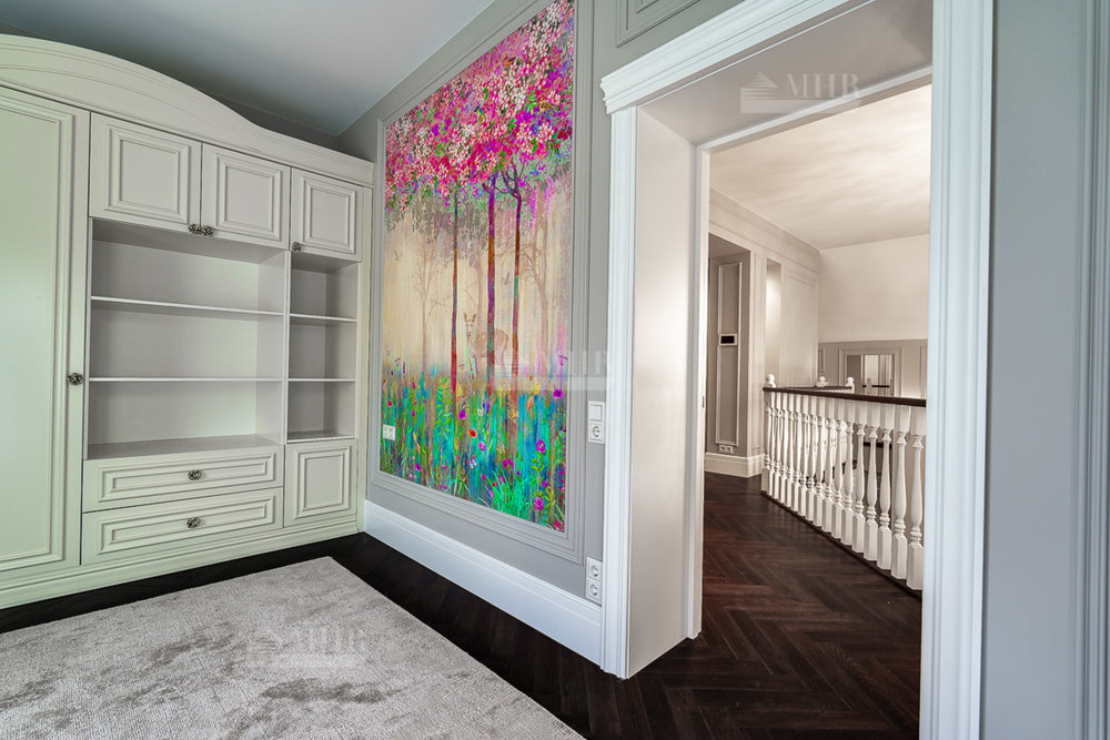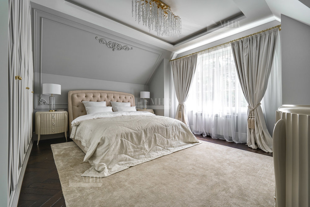 В отделке использовались высококачественные материалы - паркетная доска из натурального дуба, мрамор, фасад облицован натуральным камнем. Мебель в гостиной и зоне столовой Giorgio Casa - Италия, кухня (со встроенной Итальянской бытовой техникой SMEG), мягкая мебель выполнены на заказ. Планировка дома включает в себя: 5 спален, 4 санузла, кухню гостиную-столовую, СПА-зону с кедровой бочкой и сауной. На участке произведена посадка крупномеров, декоративных кустарников и растений.