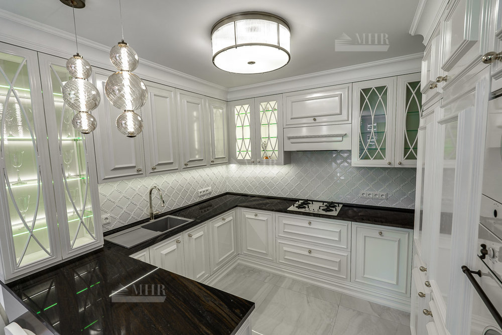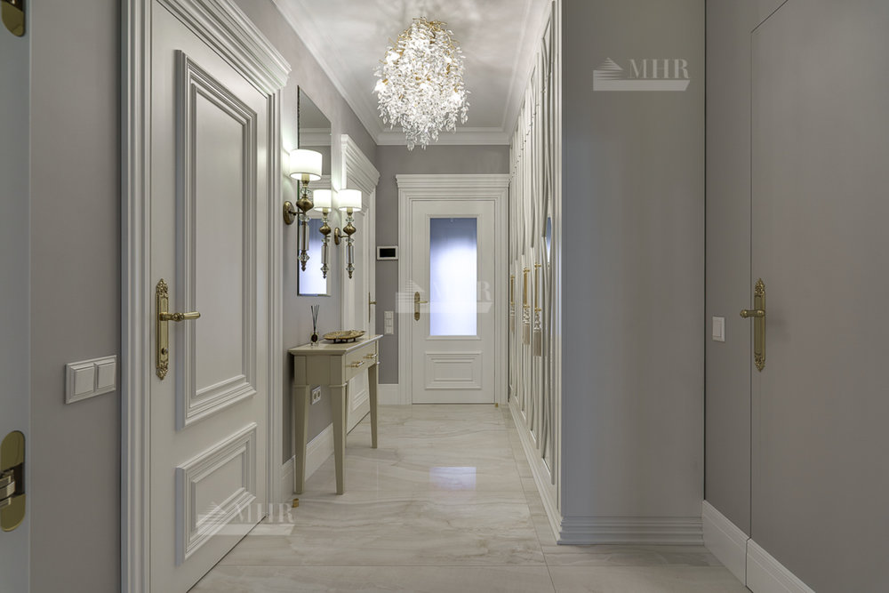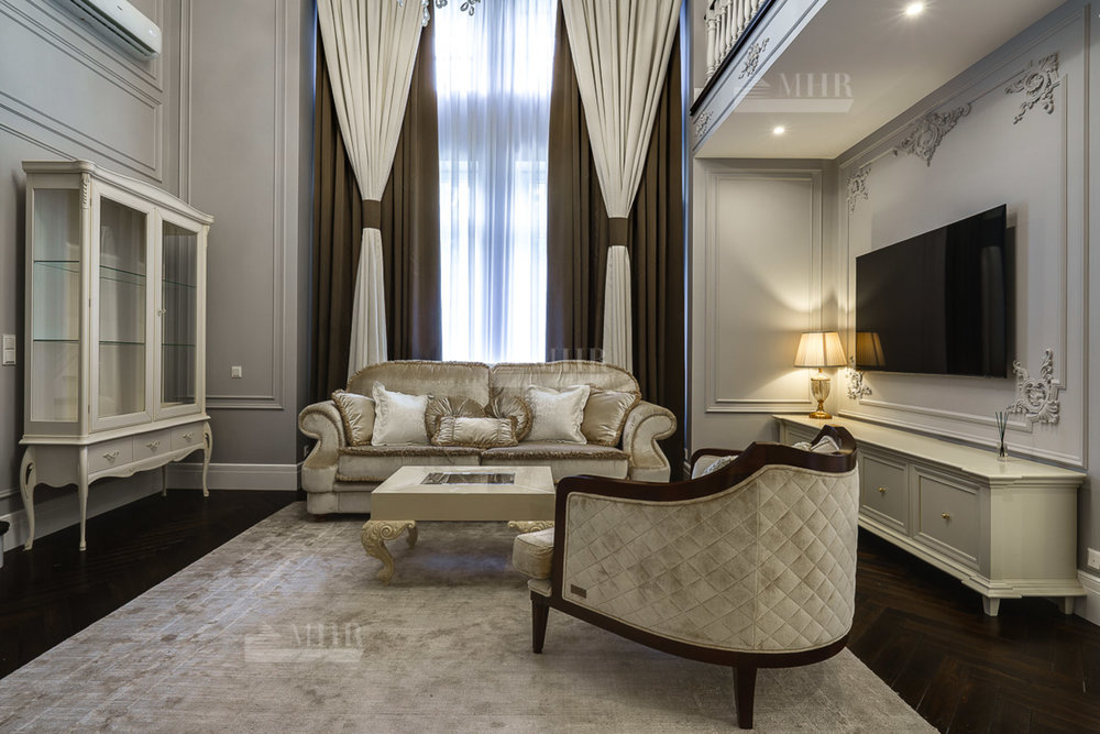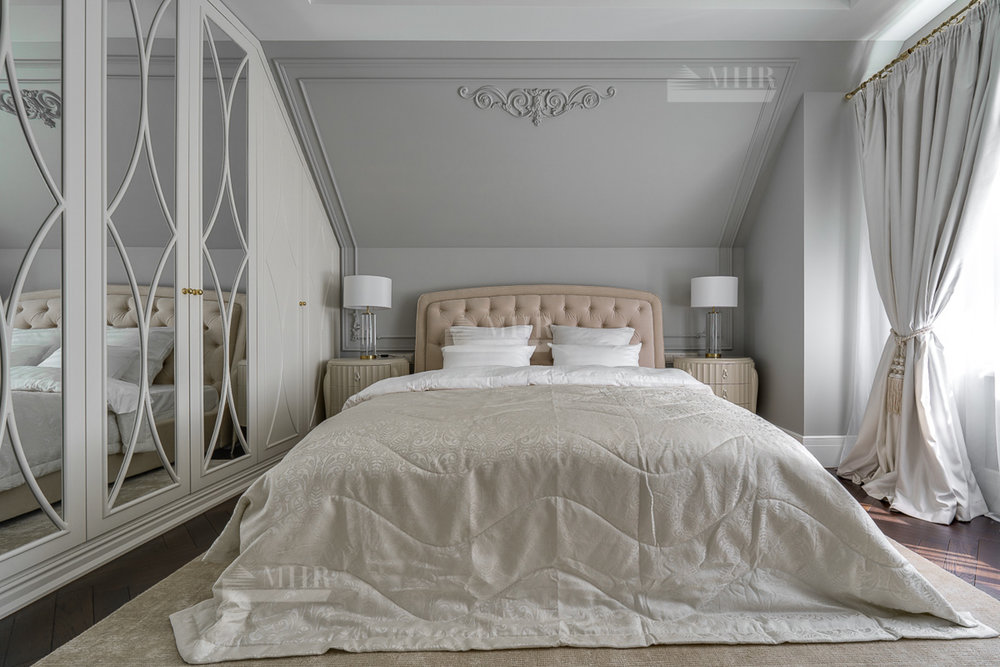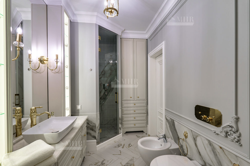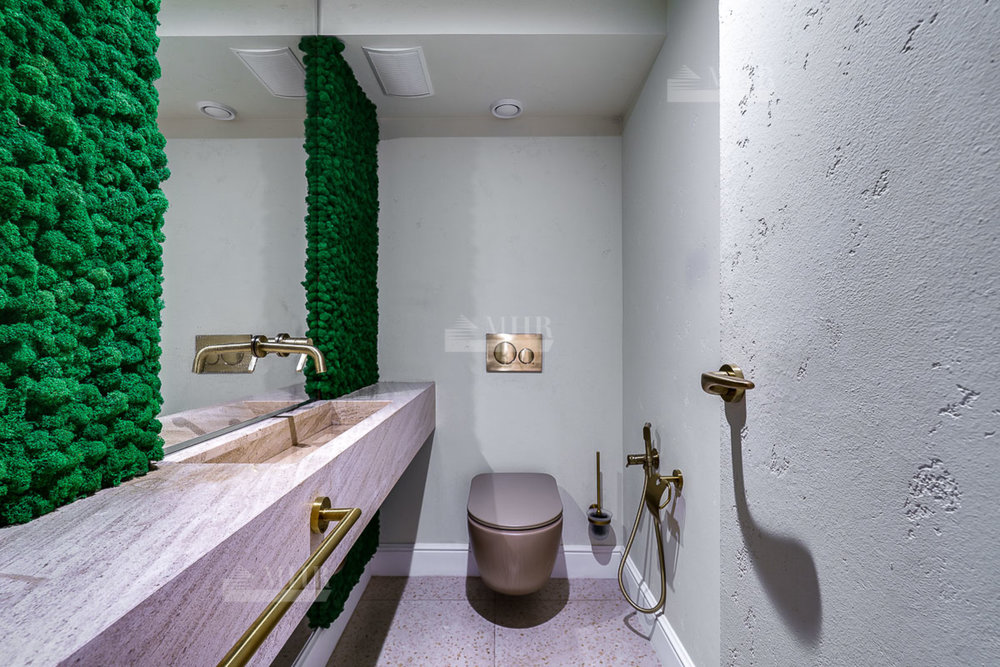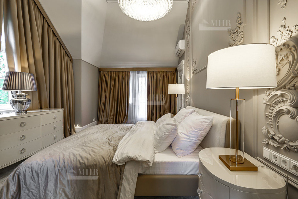 В отделке использовались высококачественные материалы - паркетная доска из натурального дуба, мрамор, фасад облицован натуральным камнем. Мебель в гостиной и зоне столовой Giorgio Casa - Италия, кухня (со встроенной Итальянской бытовой техникой SMEG), мягкая мебель выполнены на заказ. Планировка дома включает в себя: 5 спален, 4 санузла, кухню гостиную-столовую, СПА-зону с кедровой бочкой и сауной. На участке произведена посадка крупномеров, декоративных кустарников и растений.