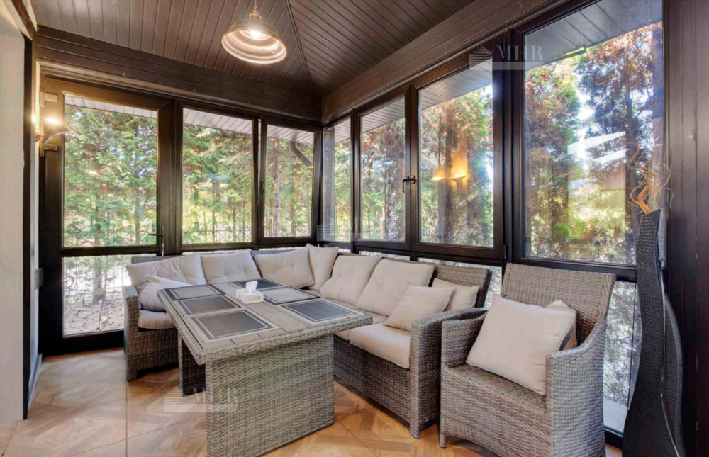 Продается дом в закрытом коттеджном поселке Европа-1. В доме финская сауна с душевой и зоной отдыха и выходом к большому подогреваемому бассейну с противотоком.