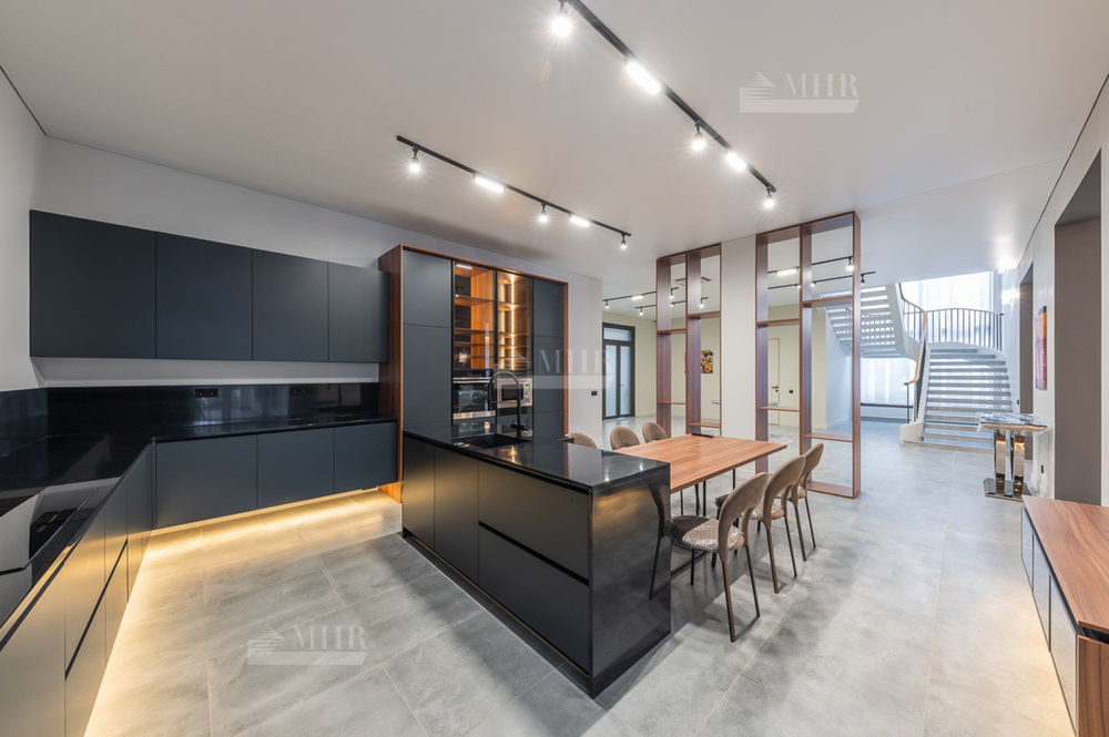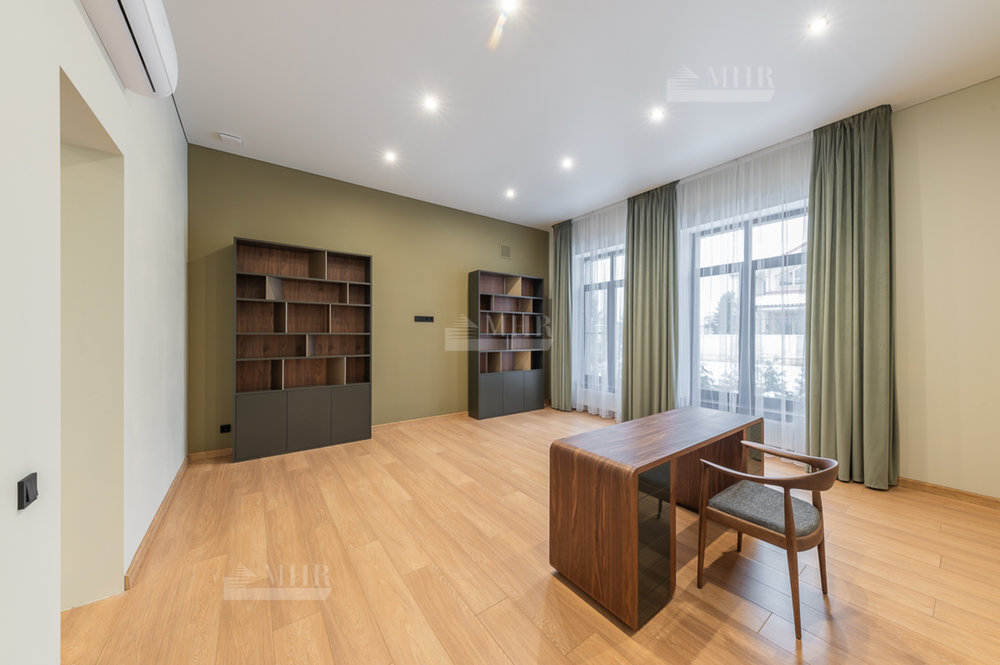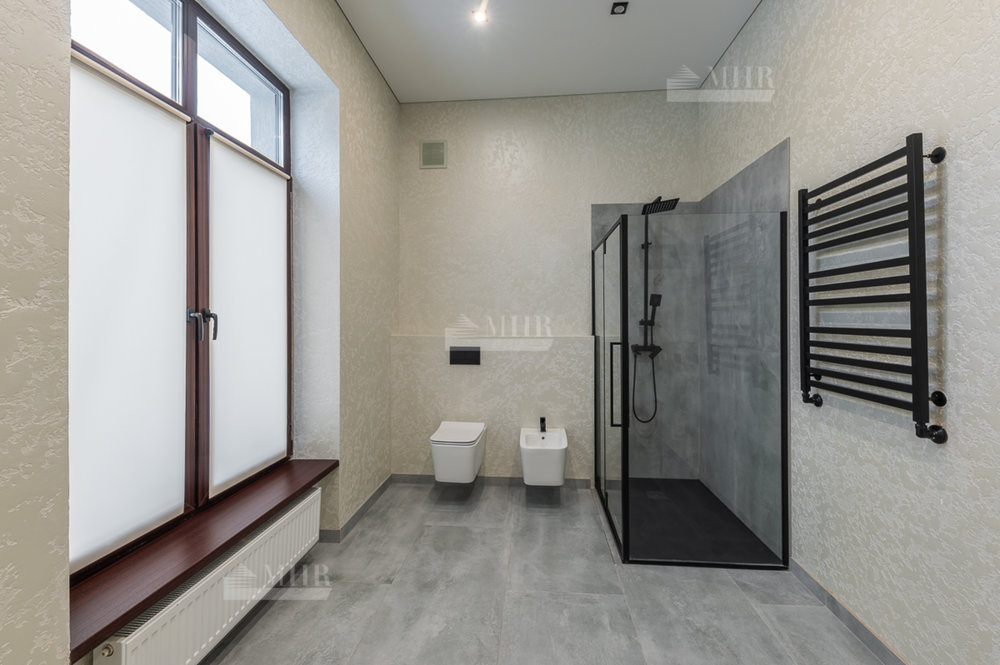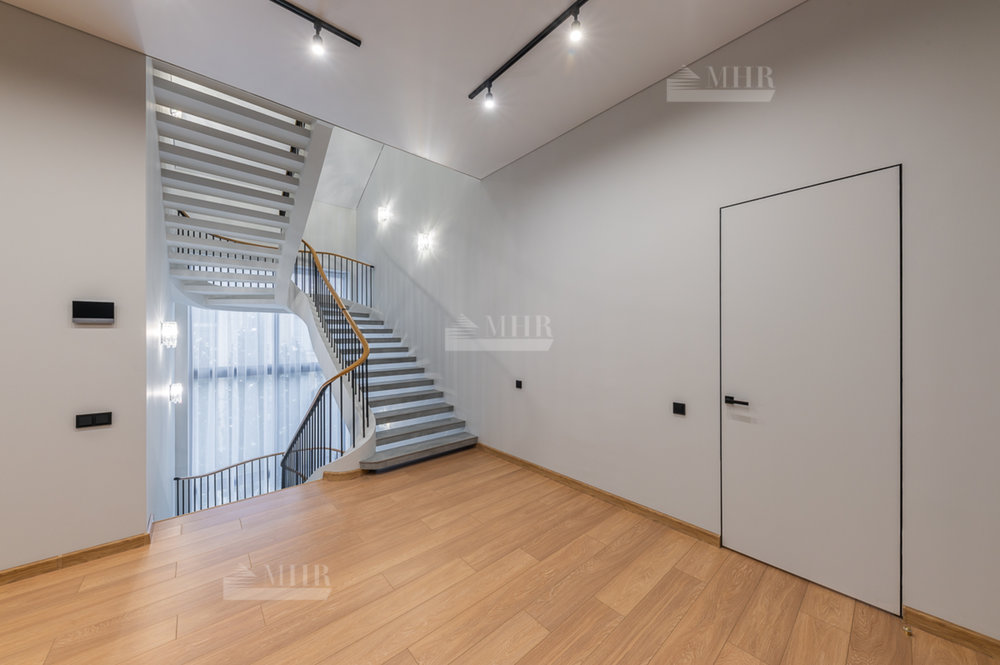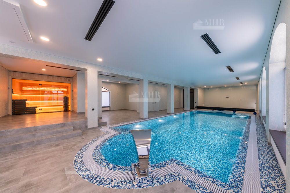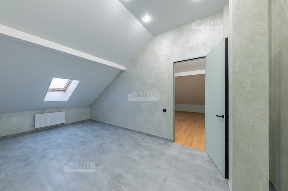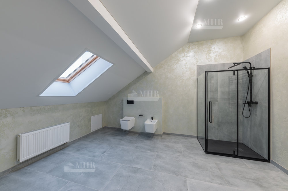 Газон с автополивом и специальным резервуаром для воды, ландшафтные работы. Деревья и кусты, клинкерная плитка, ливневки, дренажи и стоки с подогревом. Два котла Viesmann с турбогорелками, везде водяные теплые полы, нагреватели стоков и кровли, канальное кондиционирование, водоочистка, притяжная вентиляция нового типа, авто-мойка в гараже с системой очистки. Внутри дом отштукатурен, фасад сделан.