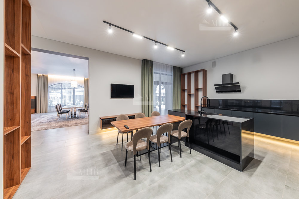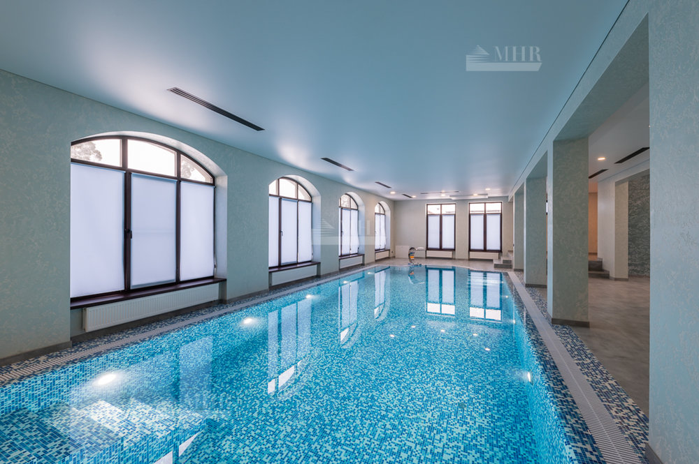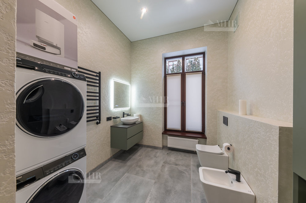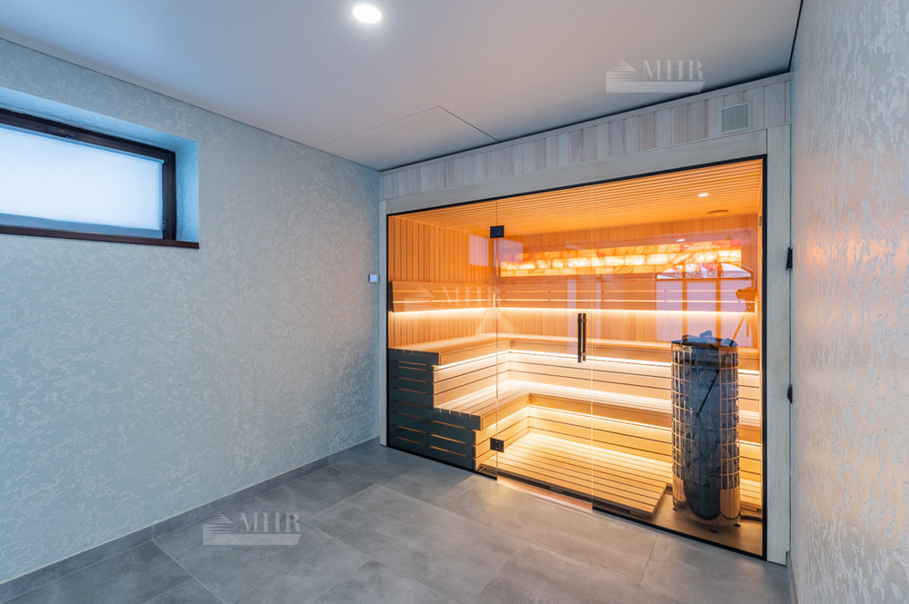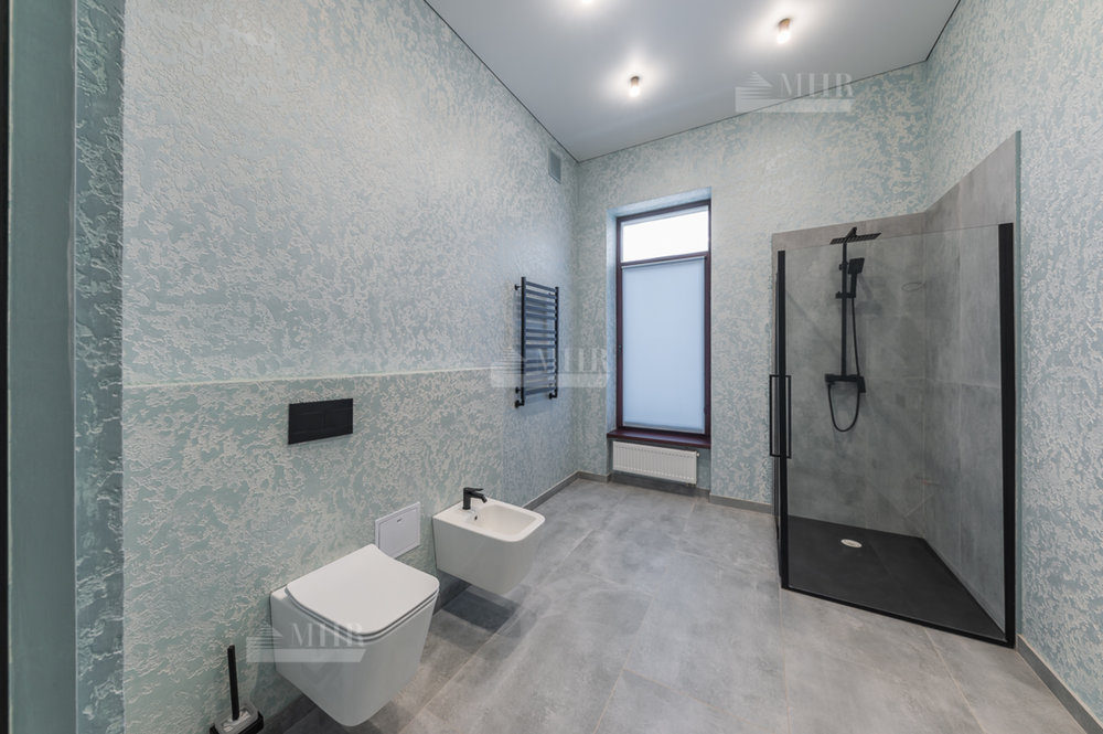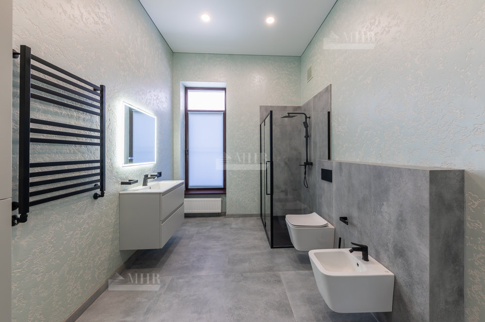 Газон с автополивом и специальным резервуаром для воды, ландшафтные работы. Деревья и кусты, клинкерная плитка, ливневки, дренажи и стоки с подогревом. Два котла Viesmann с турбогорелками, везде водяные теплые полы, нагреватели стоков и кровли, канальное кондиционирование, водоочистка, притяжная вентиляция нового типа, авто-мойка в гараже с системой очистки. Внутри дом отштукатурен, фасад сделан.