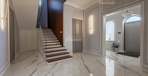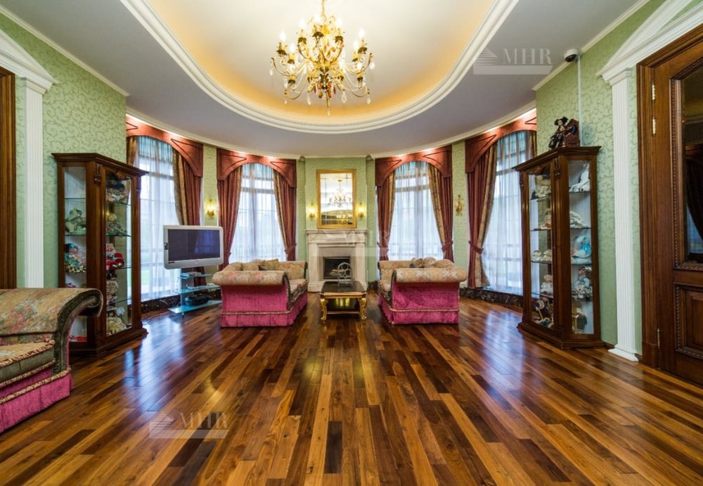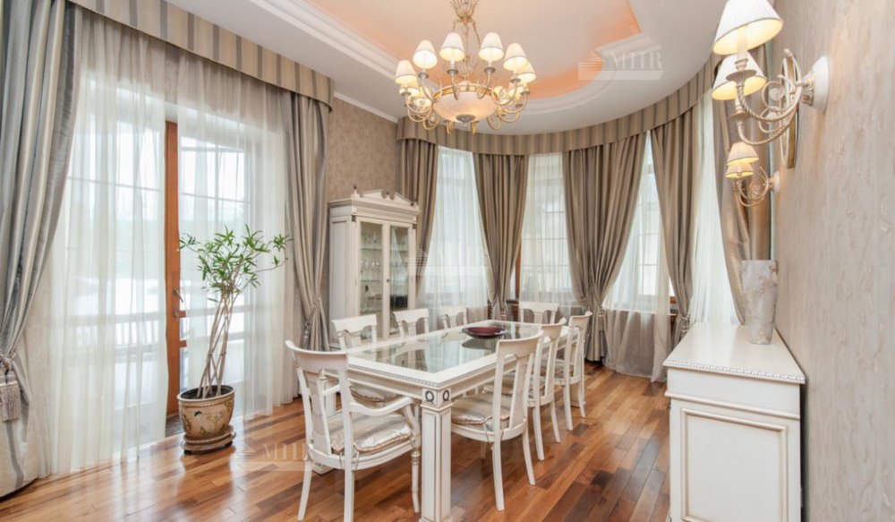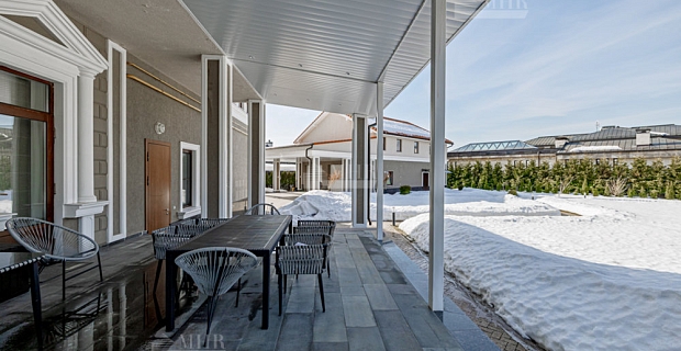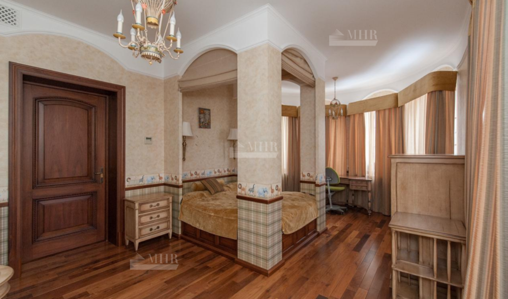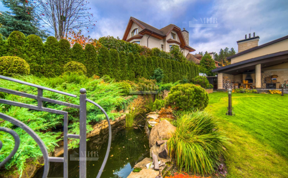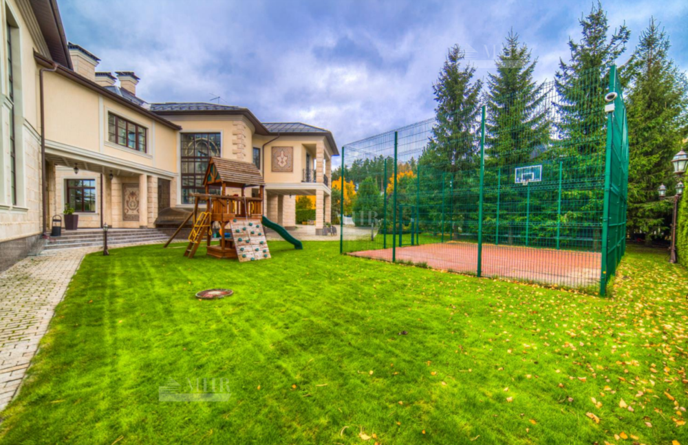 Резиденция, выполненная в классическом стиле , общей площадью 1200 м2 с отдельно стоящим зданием гаража с квартирой для персонала 200 м2. На участке (30 соток) выполнен ландшафтный дизайн с дорожками, освещением и альпийской горкой, хвойными и лиственными, фруктовыми деревьями, кустарниками и растениями, обустроена спортивная и детская площадка, крытая барбекю.