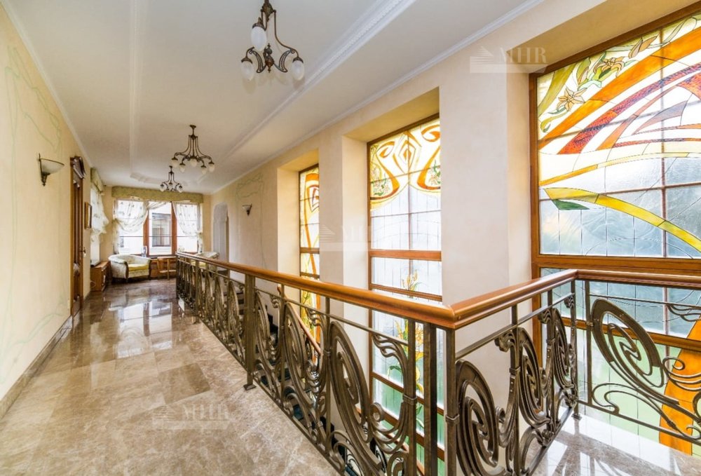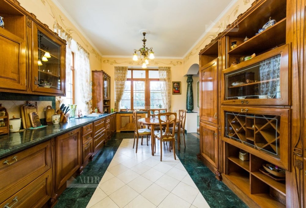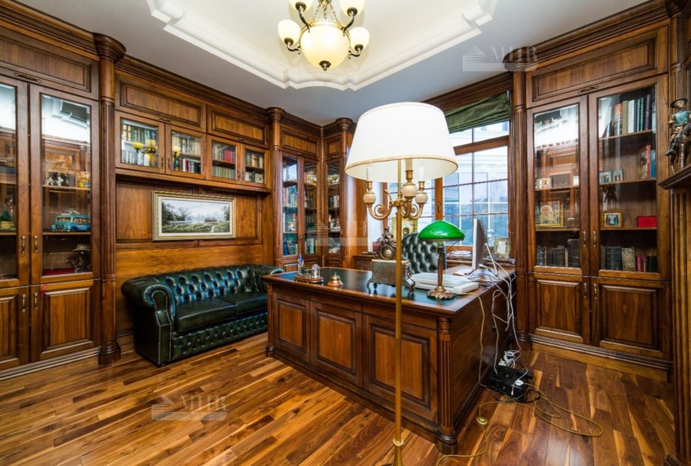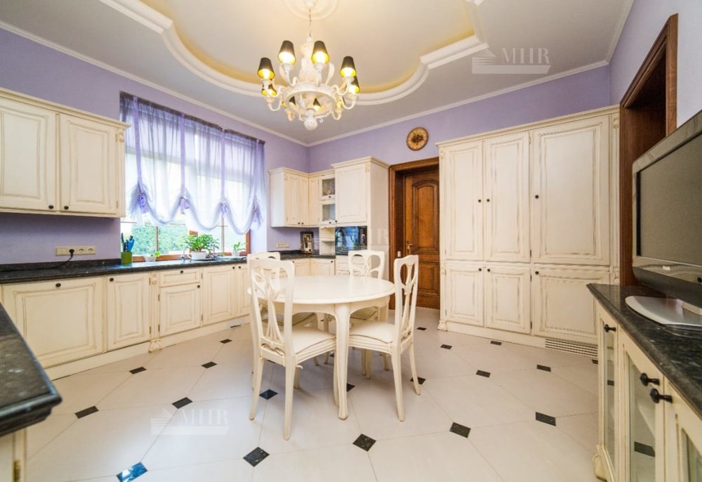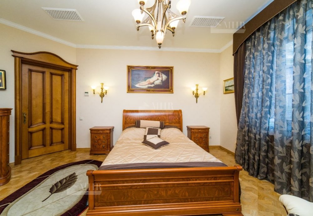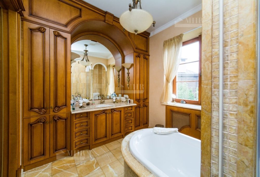 Резиденция, выполненная в классическом стиле , общей площадью 1200 м2 с отдельно стоящим зданием гаража с квартирой для персонала 200 м2. На участке (30 соток) выполнен ландшафтный дизайн с дорожками, освещением и альпийской горкой, хвойными и лиственными, фруктовыми деревьями, кустарниками и растениями, обустроена спортивная и детская площадка, крытая барбекю.