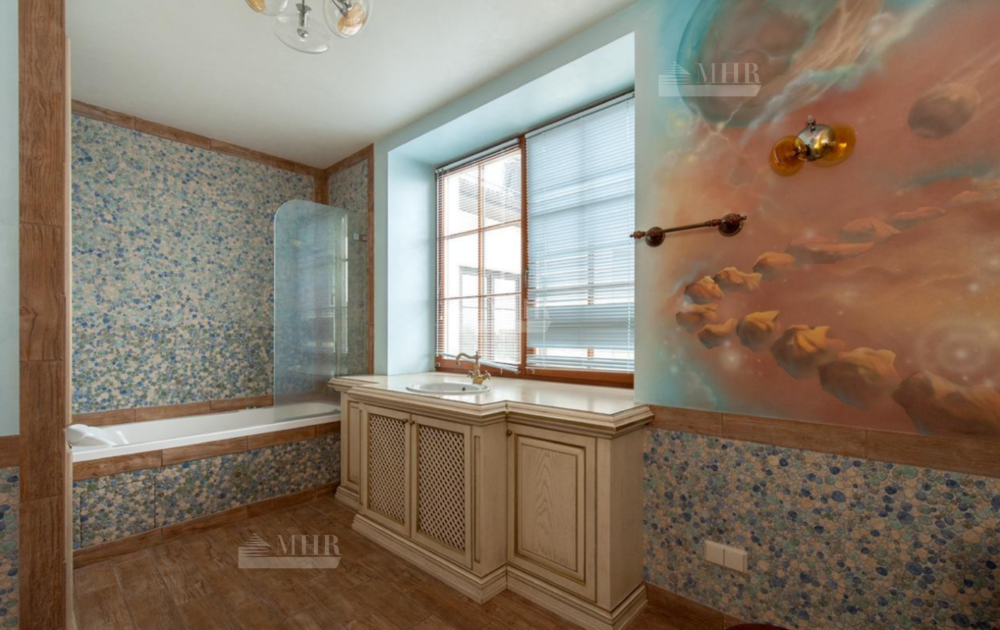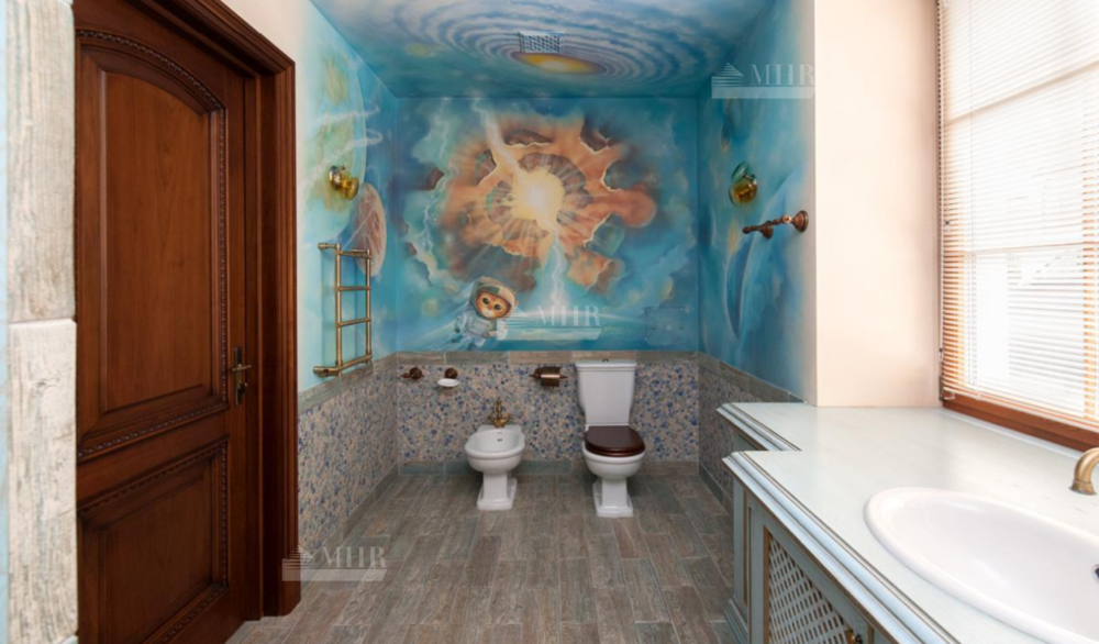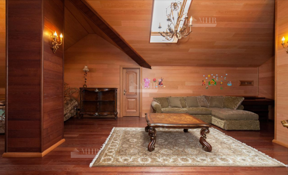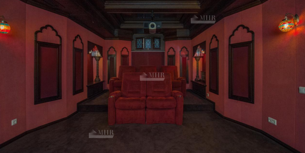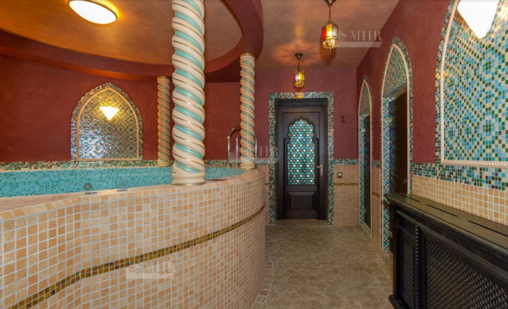 Цоколь: цокольный этаж выполнен в восточном стиле: холл, джакузи, баня, спортзал, 2 душевые, санузел, оружейная, кинотеатр, кальянная, зал отдыха с камином, прачечная.