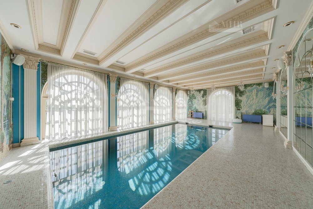 1 этаж - гостиная, большая столовая, малая столовая, кухня, кабинет, гостевая спальня  с с/у, гардеробные, 2 с/у, бассейн / SPA / сауна  – чаша 8х4м., гараж.