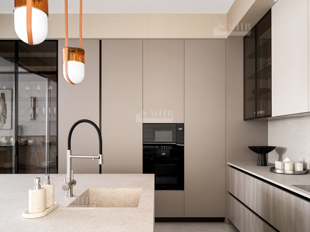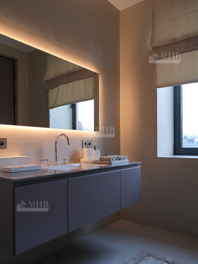 В доме 4 спальни, кабинет, 5 ванных комнат, сауна, просторная гостиная с камином, кухня  итальянского бренда CESAR с техникой Miele и Liebherr, постирочная, котельная.