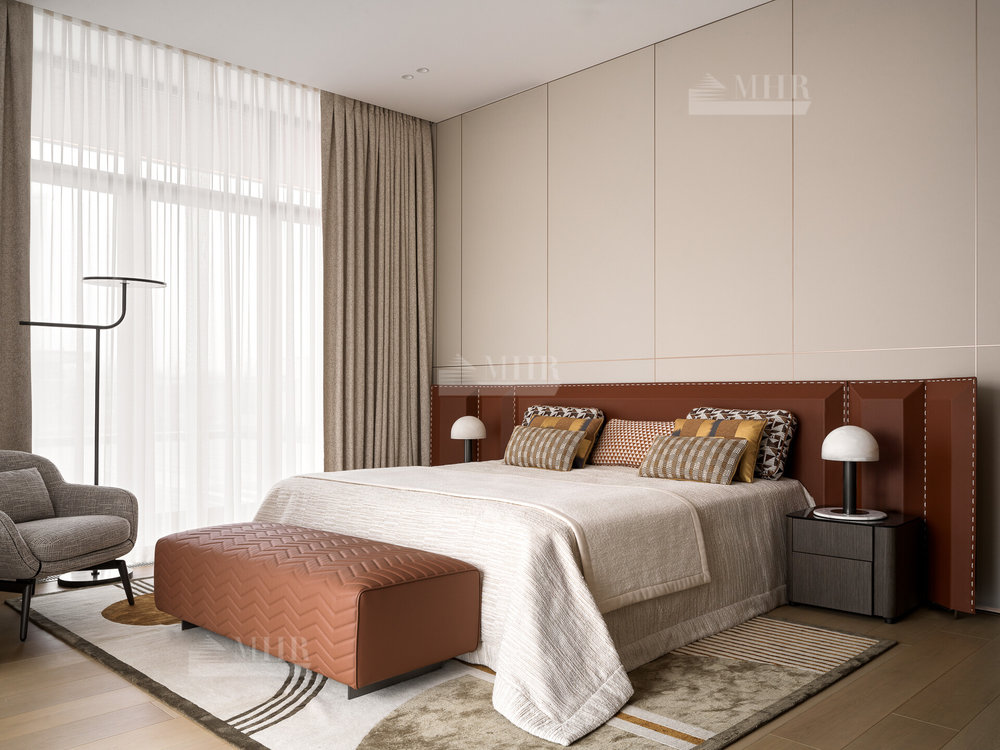 Мастер-спальня с гардеробной, ванной и выходом на террасу.