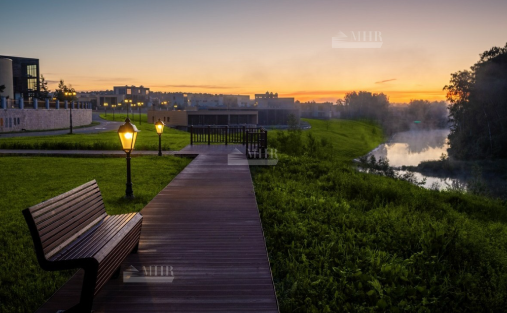На благоустроенной территории расположены частные школа и детский сад Cambridge International School, круглогодичная ледовая арена и фитнес со SPA и открытым бассейном. Общественные пространства заботливо благоустроены- для жителей готовы прогулочная набережная реки, детские спортивные площадки, теннисные корты, беговые и велодорожки.