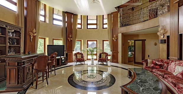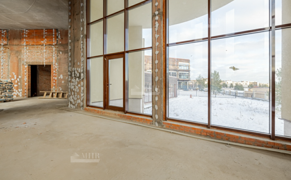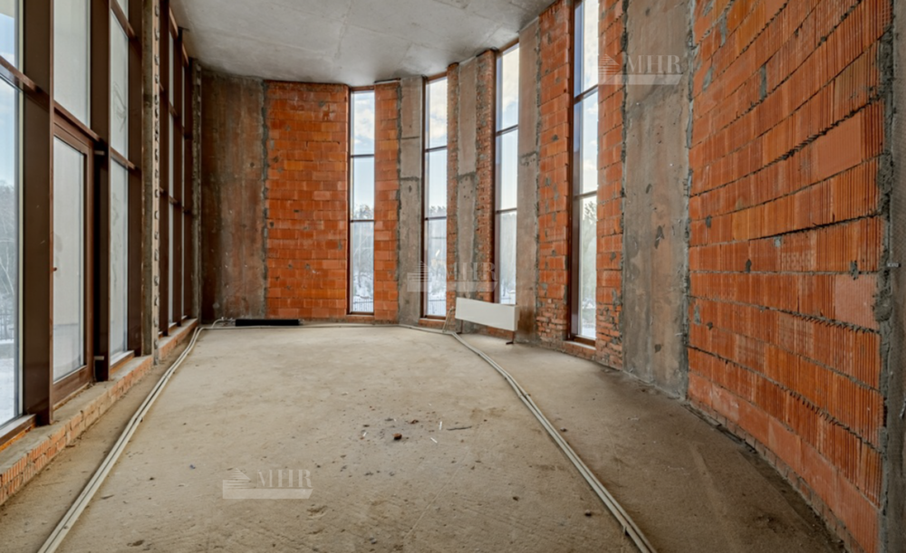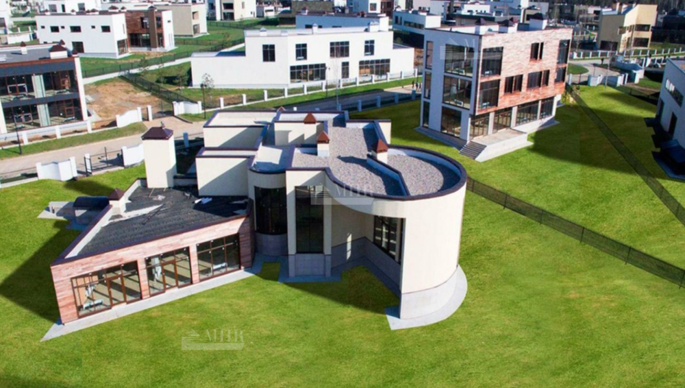 Три этажа, просторные террасы, полукруглые комнаты, свободная планировка, высокие потолки и панорамные окна высотой в два этажа, отсутствие отделки. Ещё одно достоинство особняка:  качественная и дорогая дренажная система, благодаря чему цокольный этаж всегда будет оставаться сухим.