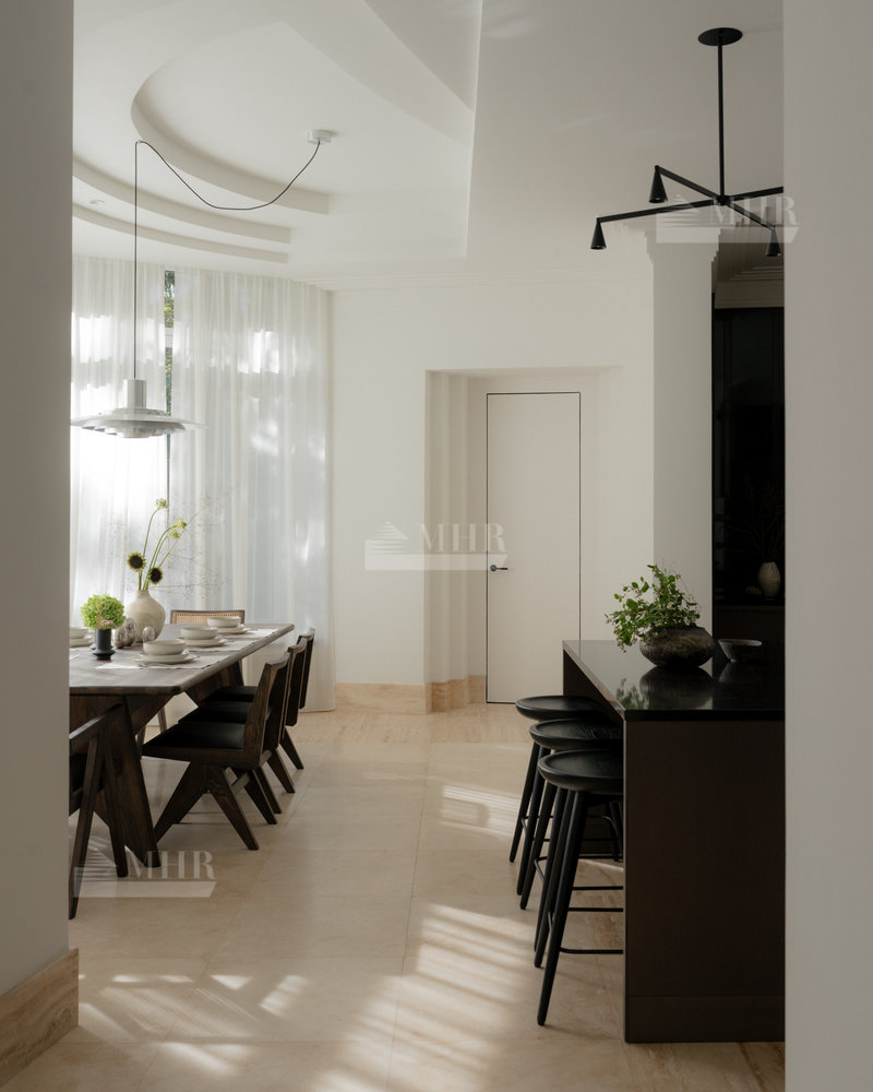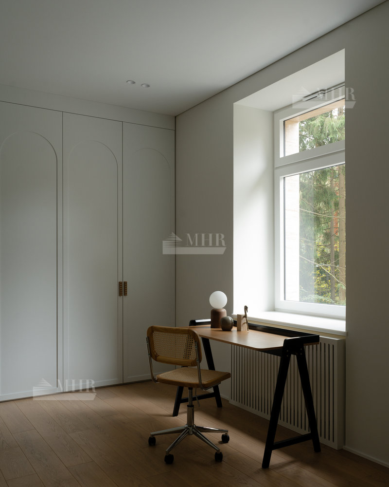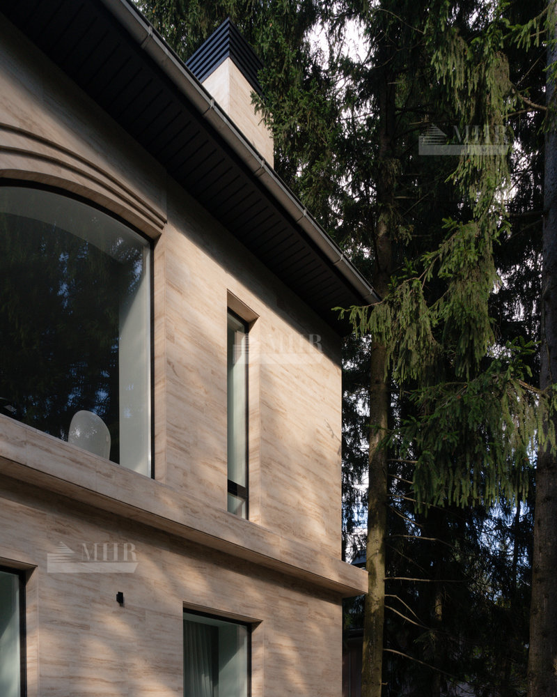 Дом площадью 700 м² с 6 спальнями расположен на лесном участке 20 соток в престижном поселке Лебединое озеро на Рублево-Успенском шоссе.