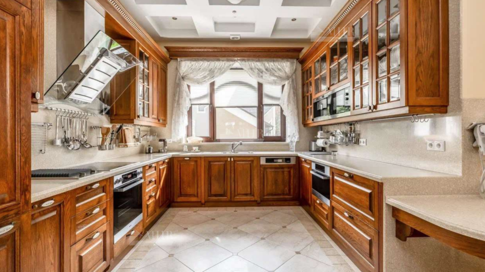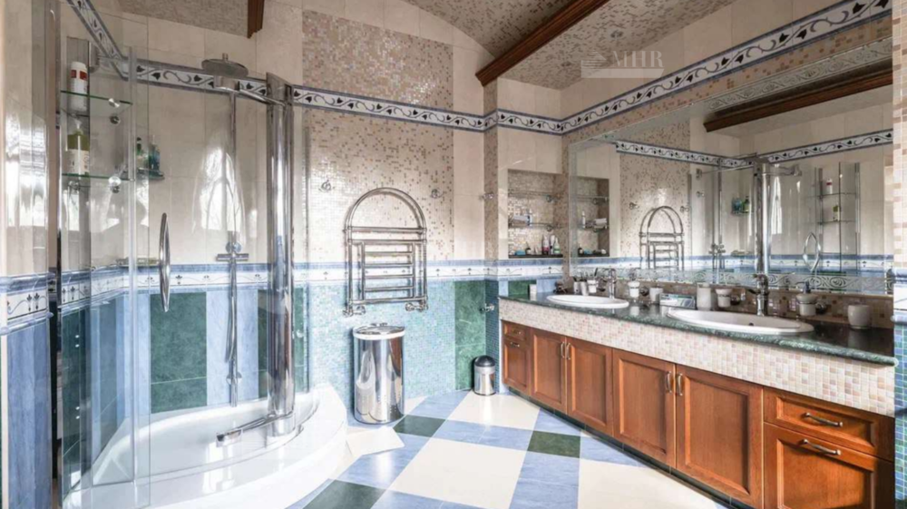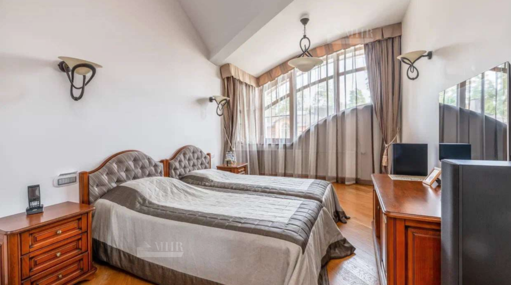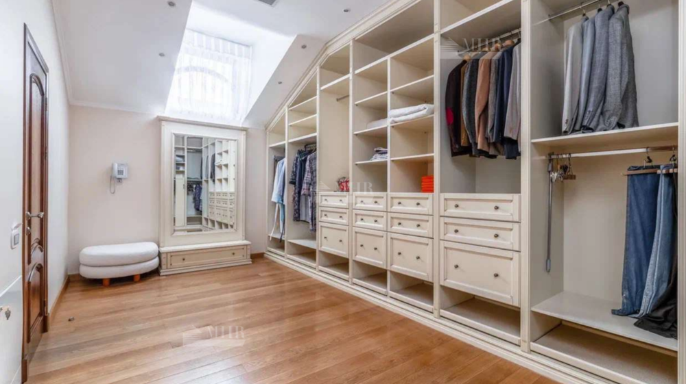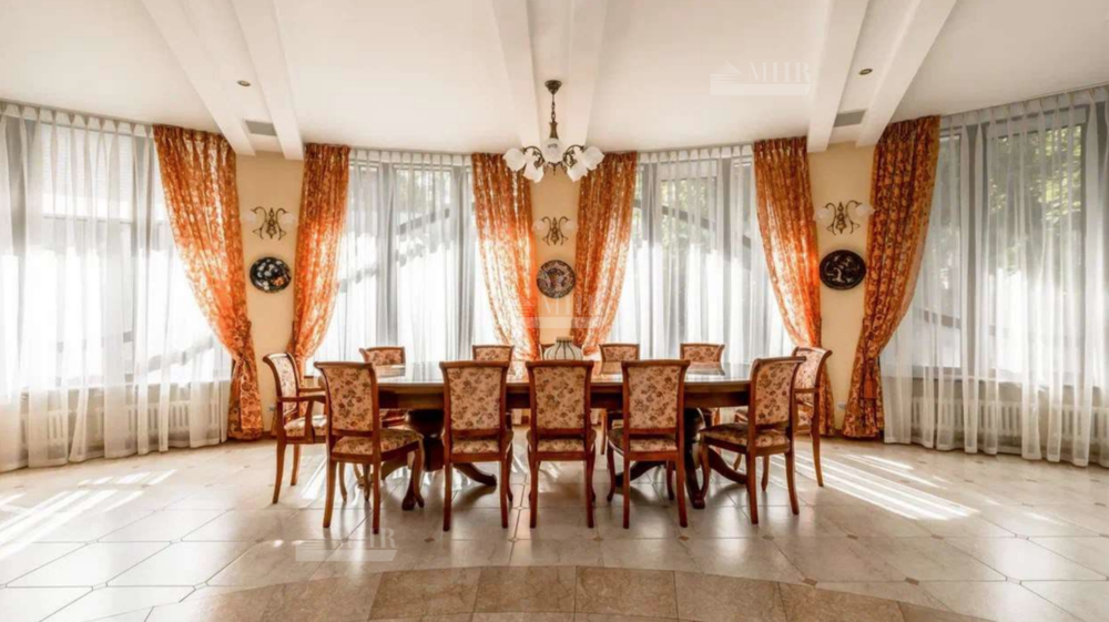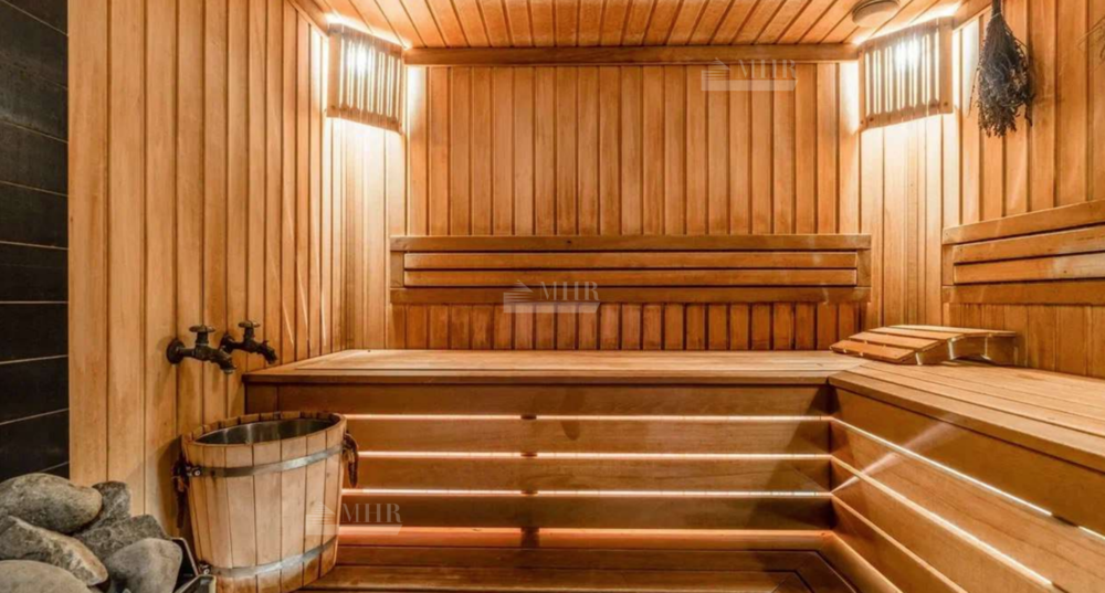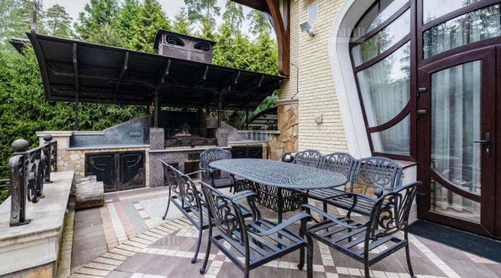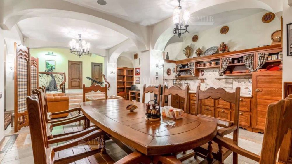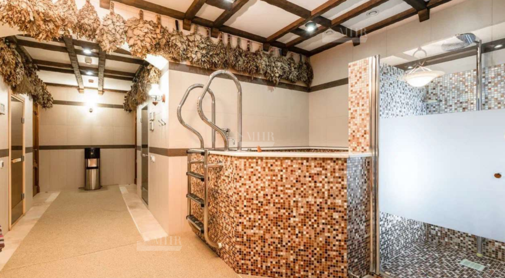 Дом оборудован системой умный дом с дистанционным управлением, укомплектован дорогой техникой от элитных производителей и мебелью по индивидуальному заказу. Дом построен в классическом стиле, с цокольным этажом, мансардой, несколькими балконами, на одном из которых зона отдыха и барбекю. В доме обустроен банный комплекс с сауной, хамамом, джакузи и обширной комнатой отдыха со своей кухней, каминным залом и массажным кабинетом.