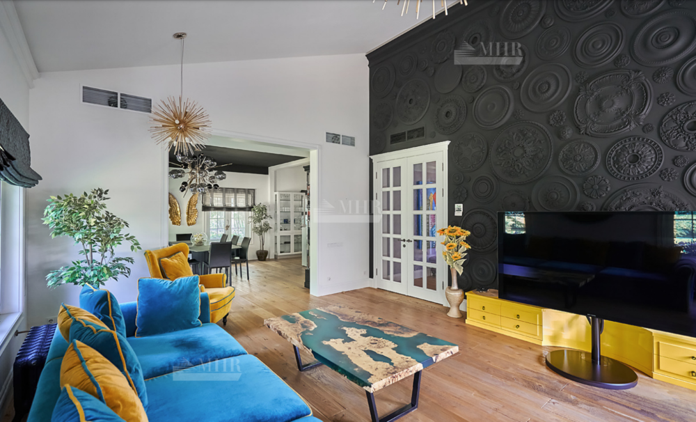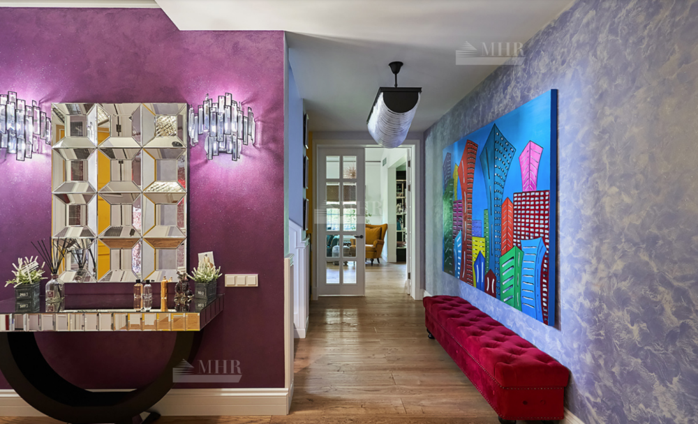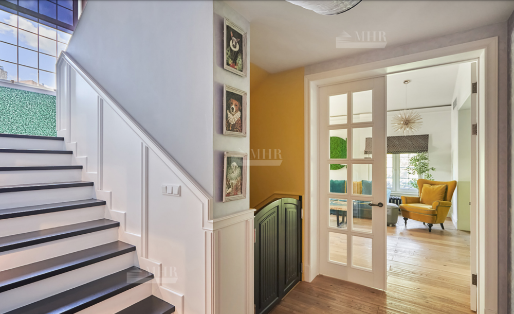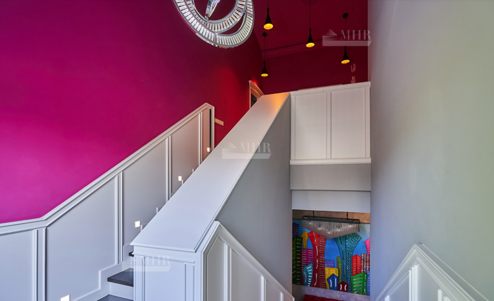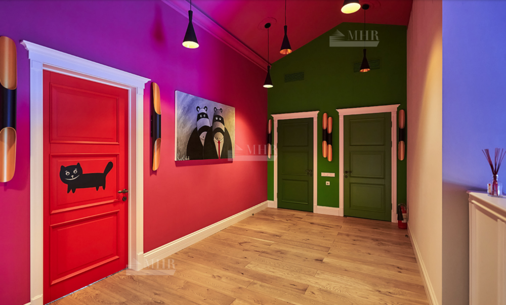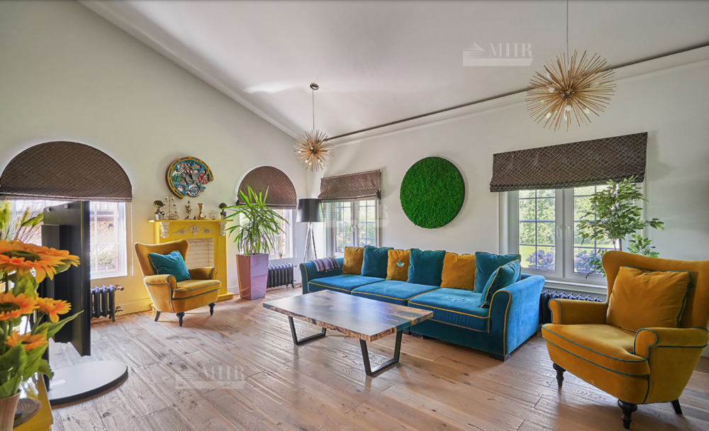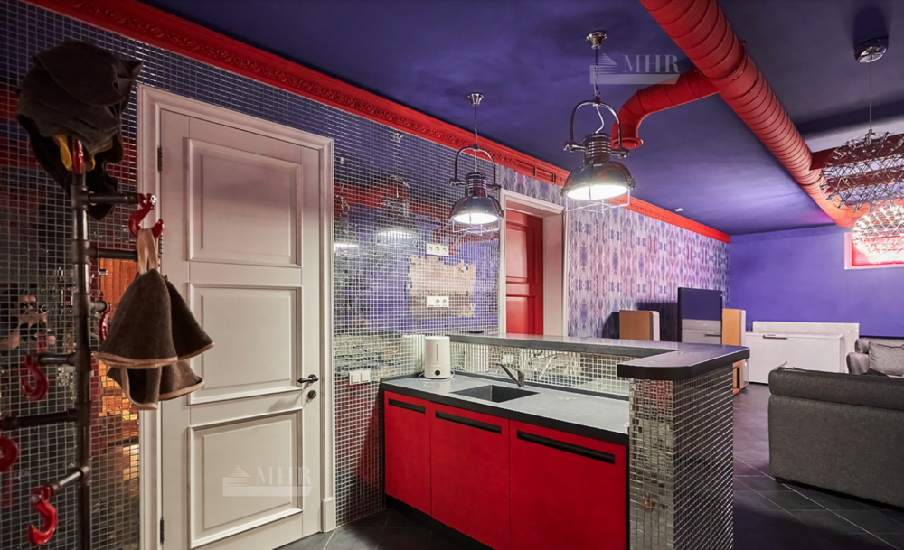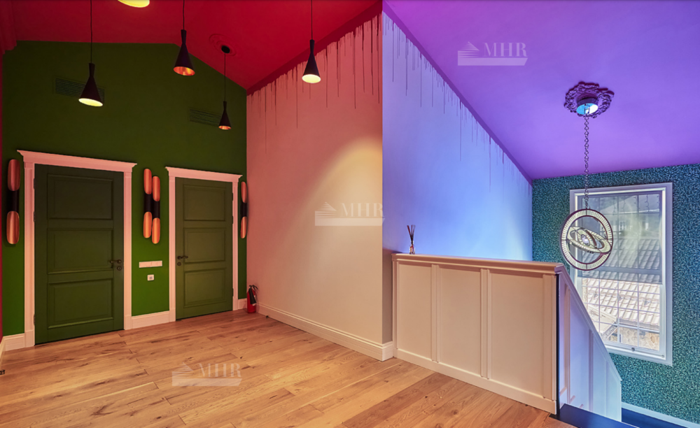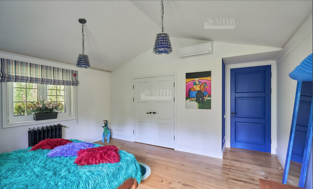Внешний фасад дома - смесь американской и английской классики, большой гараж на 4 автомобиля, просторная территория. Функциональная планировка - гардеробные комнаты, 5 спален, большая входная группа, оформленная прозрачной смальтой. Сауна с зоной отдыха заслуживают отдельного внимания.
