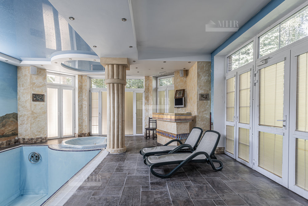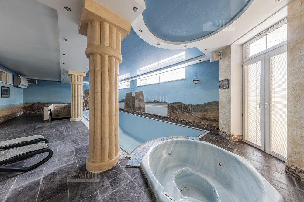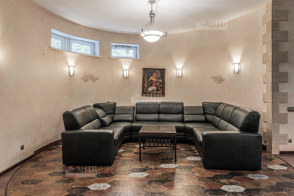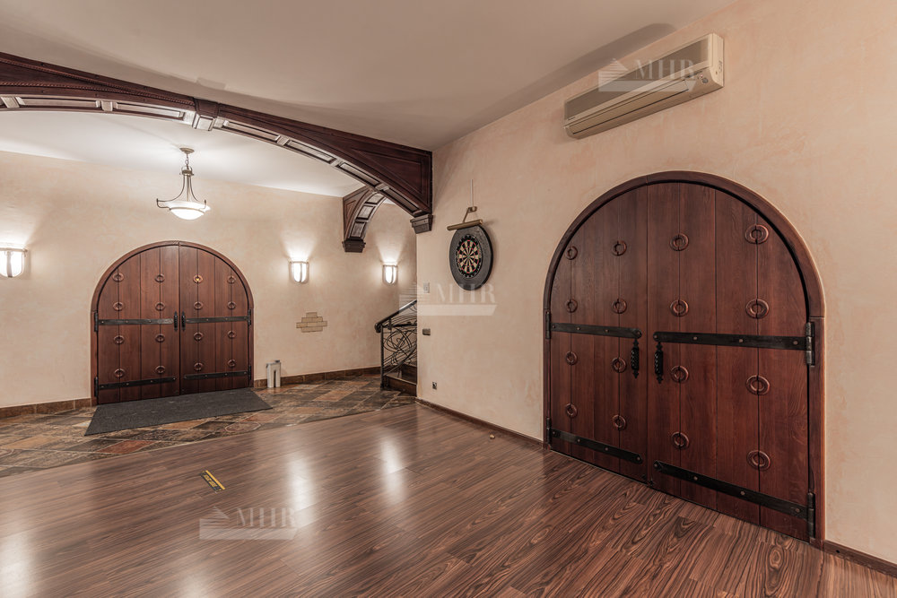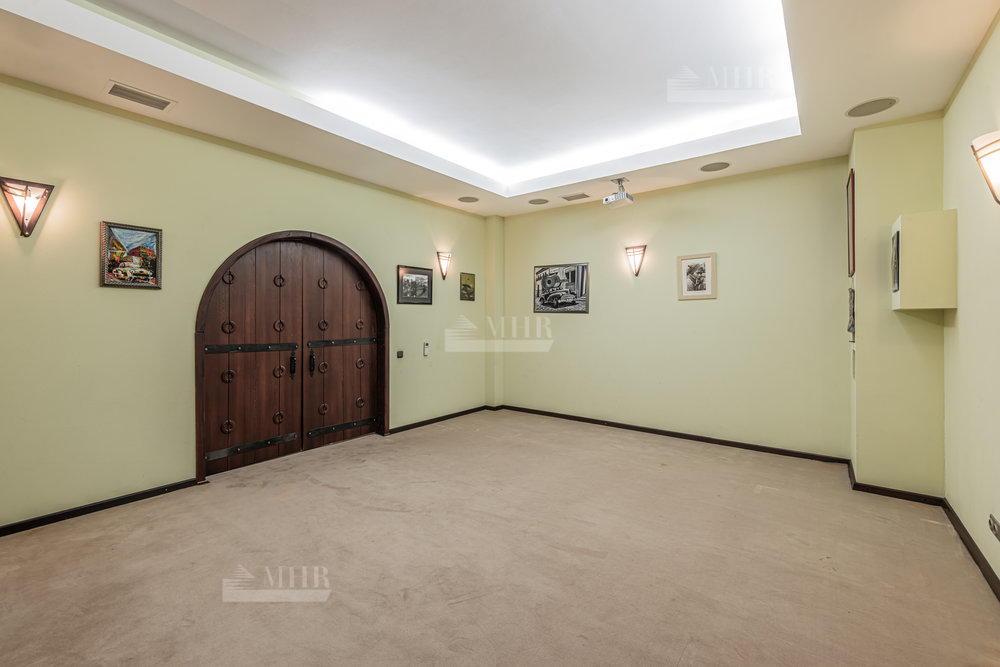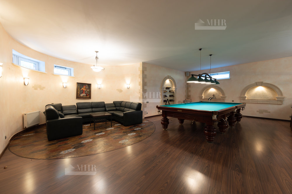 Цоколь: бильярдная , спальня, тренажерный  зал, кинотеатр, кладовая, зона спа : с/у, постирочная, сауна, хаммам, бассейн, около 12м. с выходом во двор, душевая, зона отдыха, раздевалка, техническая: котельная, техническая часть бассейна;