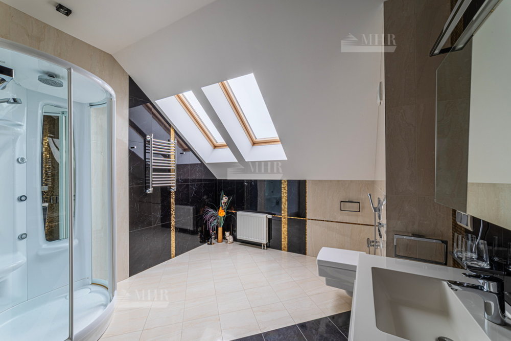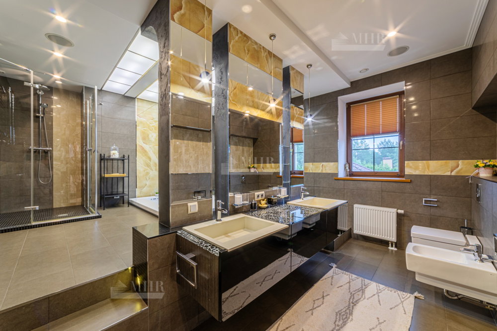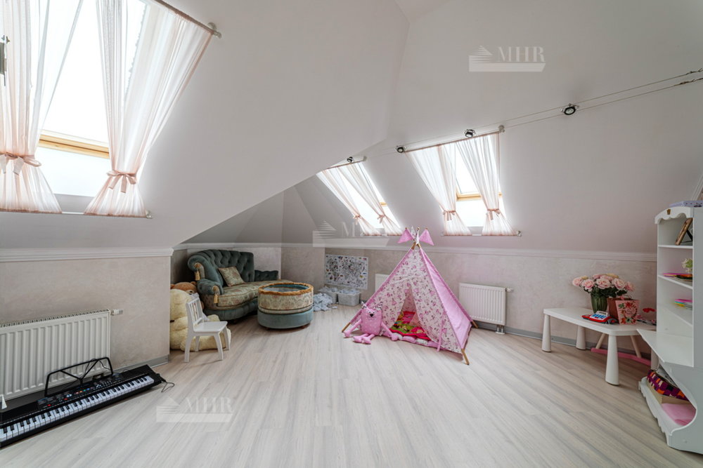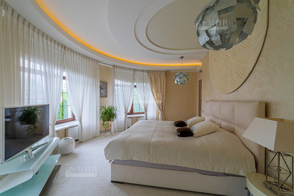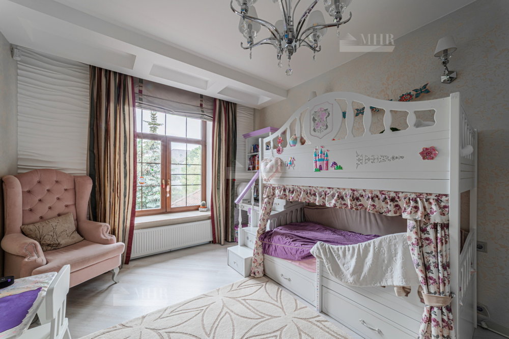 2-й этаж: мастер-спальня с мебелью, большой гардеробной и ванной с гидромассажем, детская спальня с с/у, кабинет с с/у;