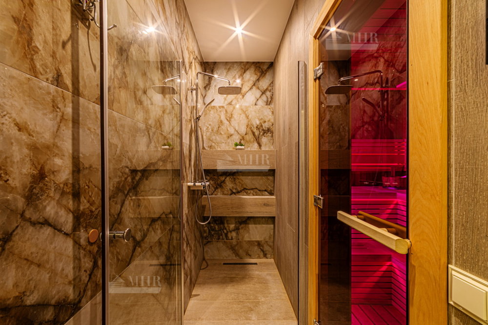1-й этаж: СПА-комплекс: бассейн, сауна, тренажерный зал;