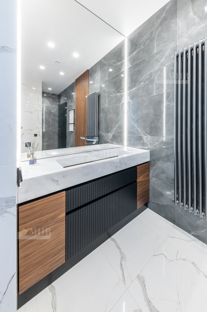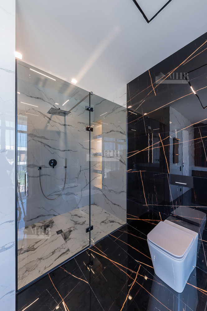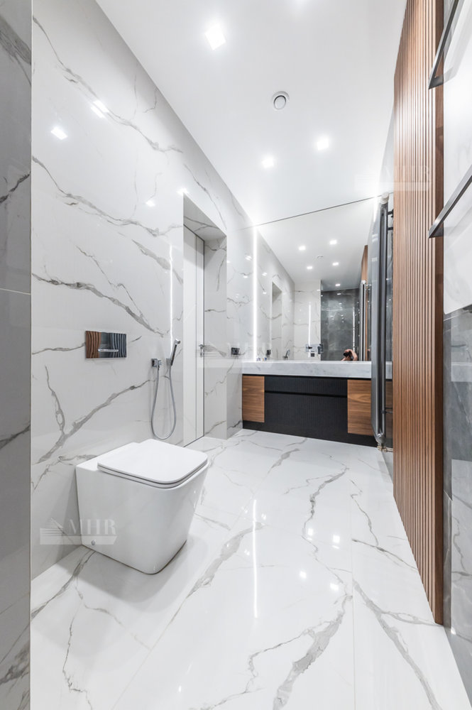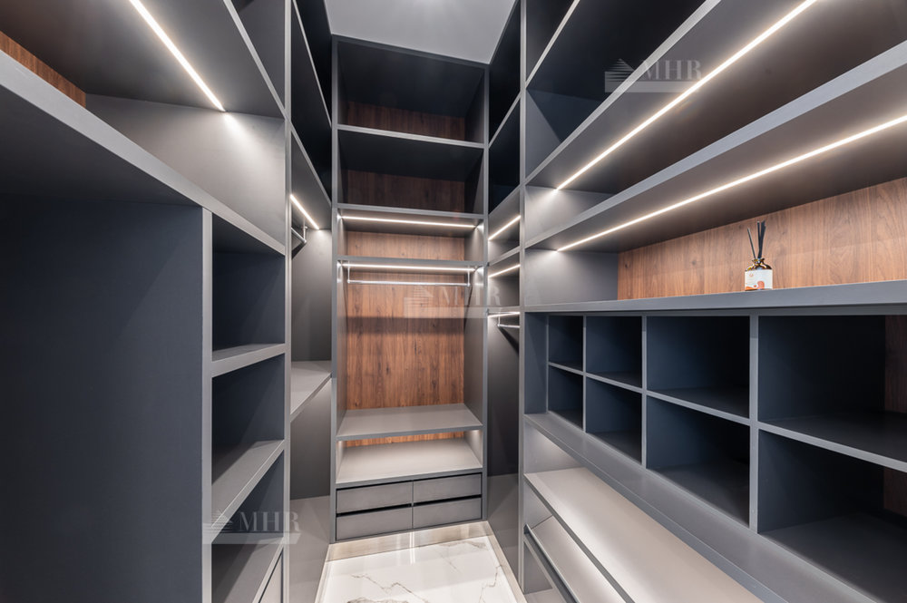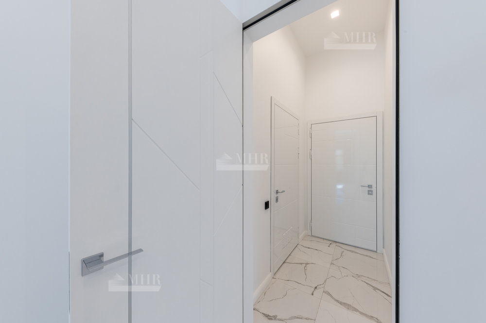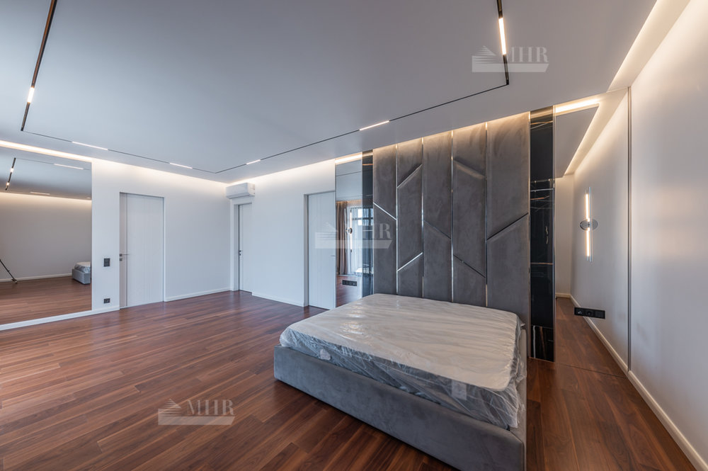В комнатах установлена элитная трековая система освещения Arlight, позволяющая создавать различные световые сценарии и управлять интенсивностью освещения. На полах уложен тёплый пол из керамогранита и орехового паркета. Комнаты украшены элитными итальянскими дверями высотой 2,3 м от торгового дома "Италон".