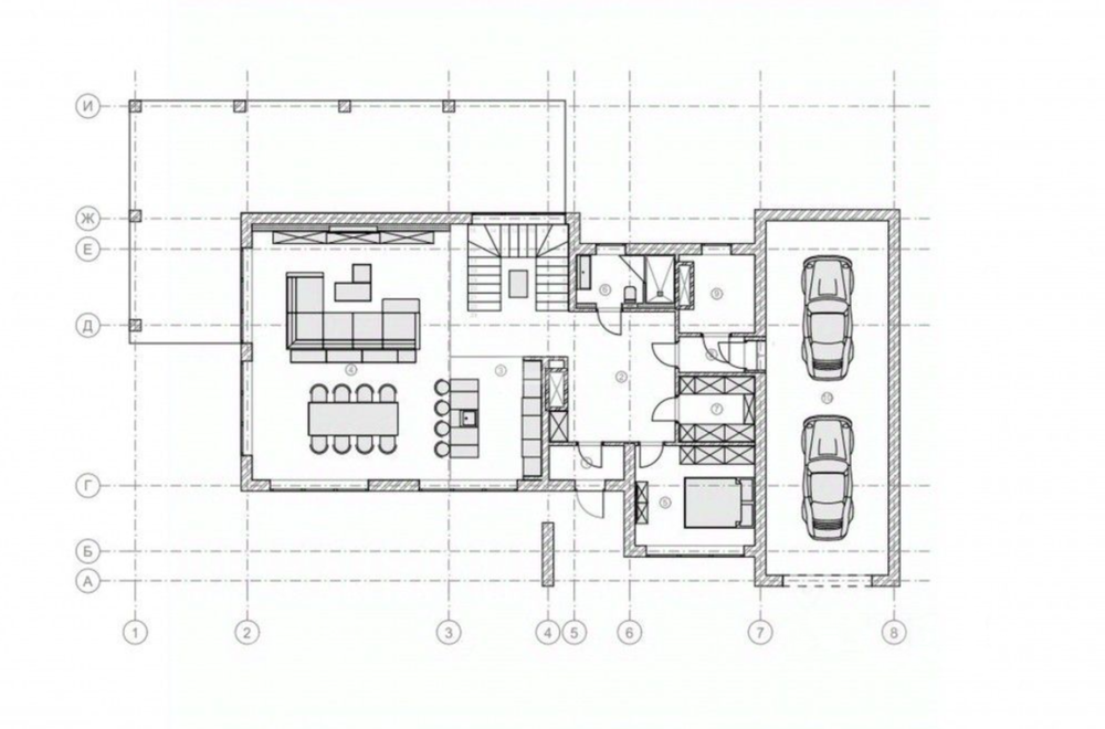 Гараж на два авто вынесен в отдельную зону 1 этажа, для большего удобства владельцев. На участке выполнен ландшафтный дизайн, установлена система автополива.