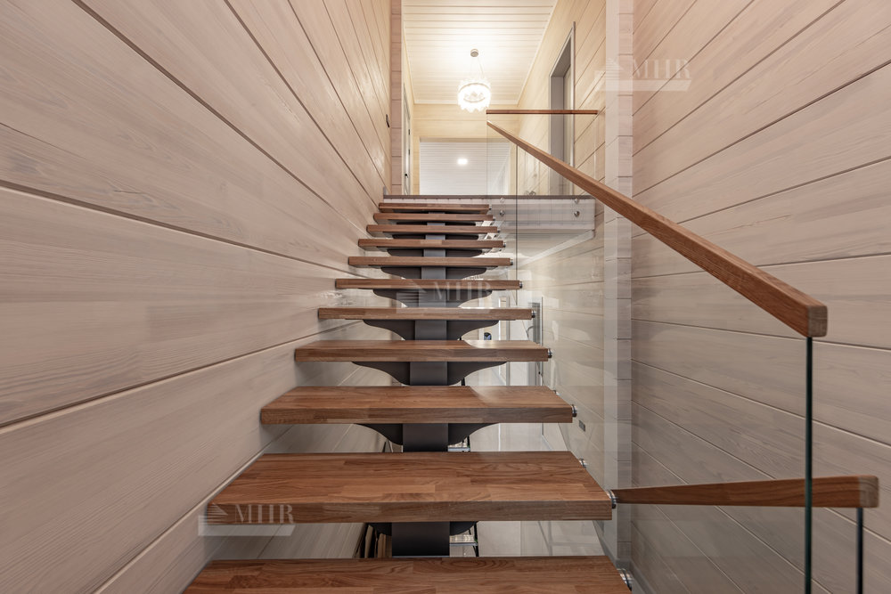 1-й этаж: гостиная, кухня с выходом на террасу, сауна с зоной отдыха, спальня с с/у и гардеробной, с/у, гардеробная;
