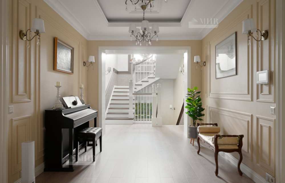 1-й этаж: гостиная, столовая, кухня, гостевая спальня, гардеробная, тренажерный зал, постирочная, совмещенный санузел, котельная, бойлерная;