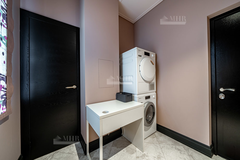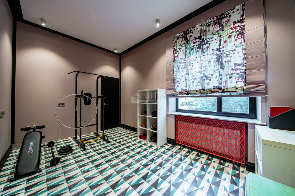 1-й этаж: тамбур, гардеробная, Холл, кухня-с выходом на патио, гостиная с выходом на патио, спорт-зал, с-у, постирочная, сейфовая, бойлерная, гараж на 2 машиноместа.