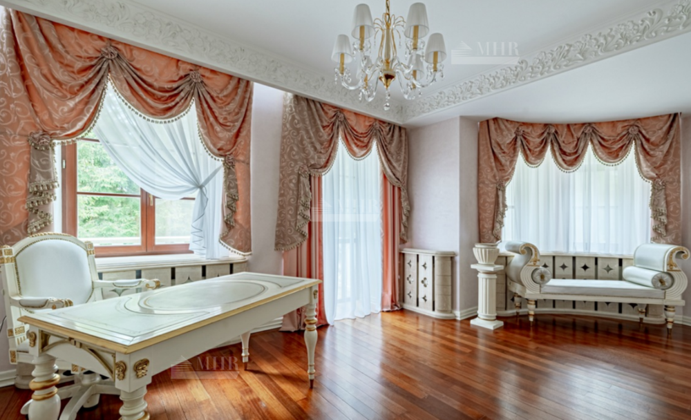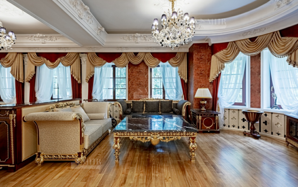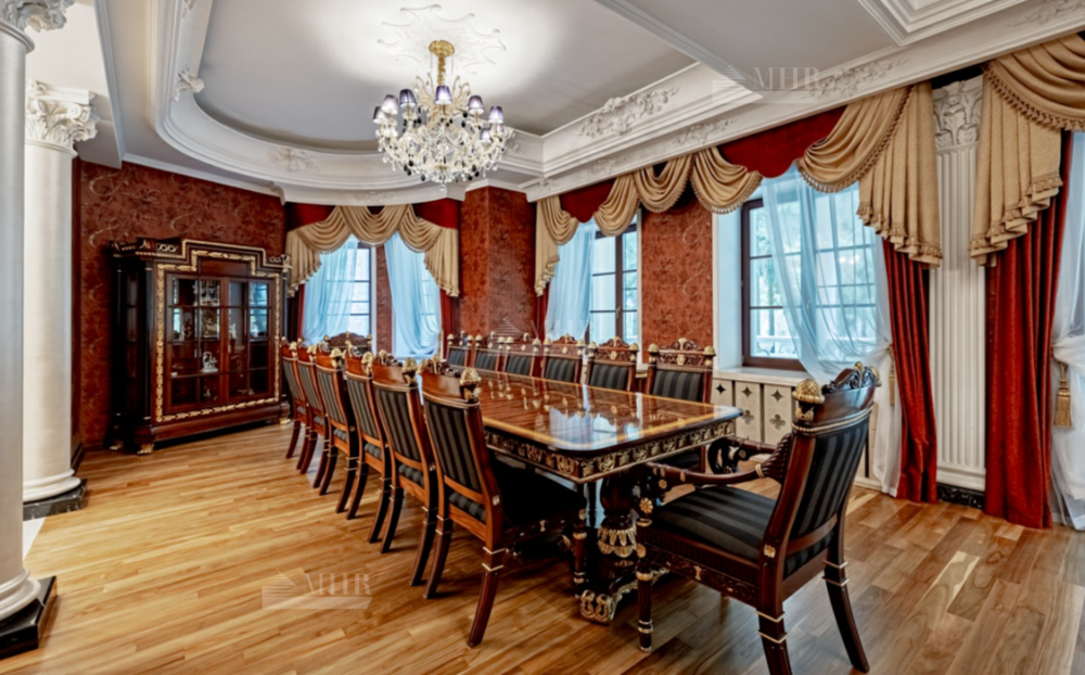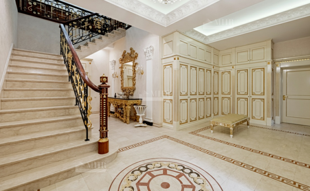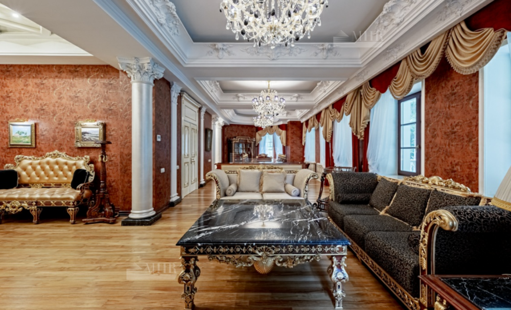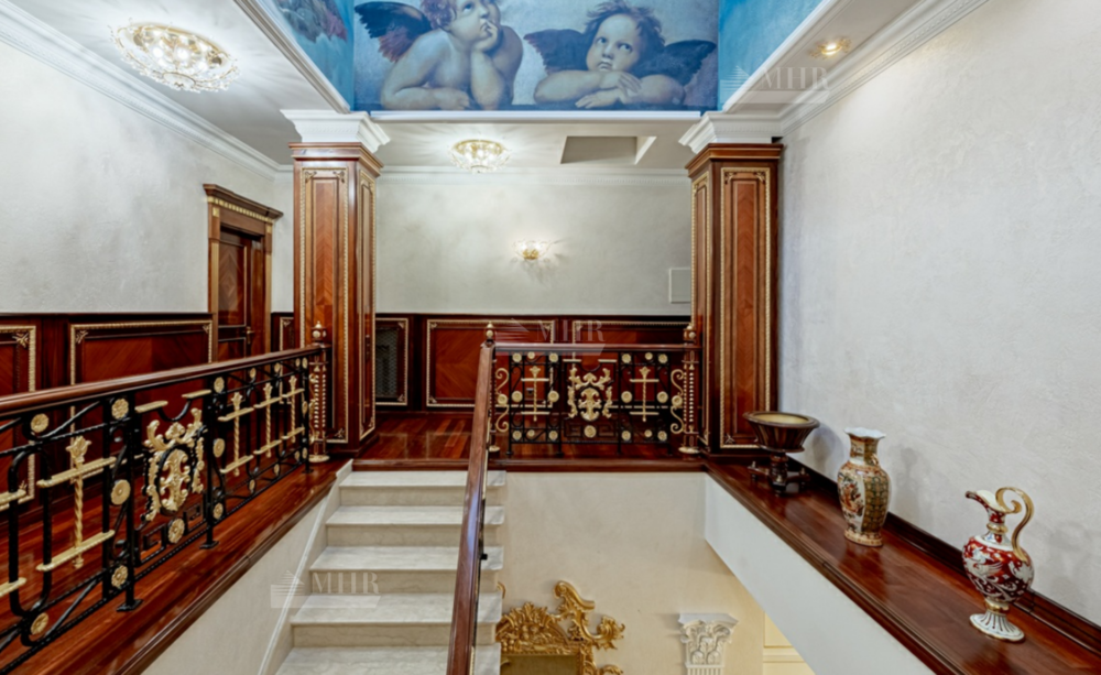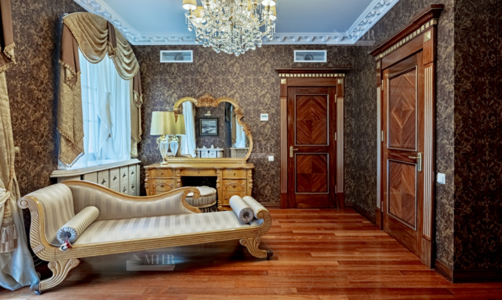 Интерьер особняка выдержан в элегантном классическом стиле с использованием натуральных и дорогих материалов.