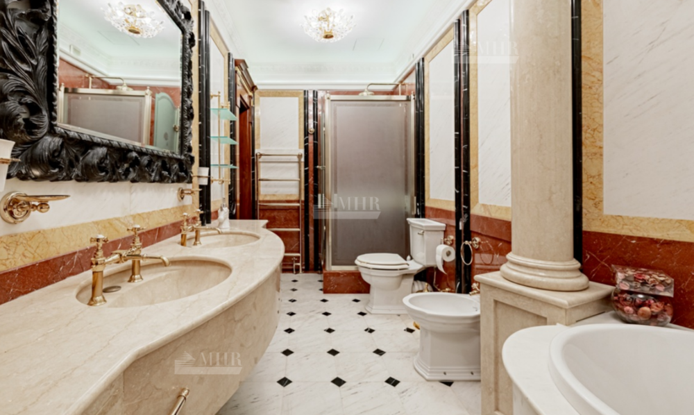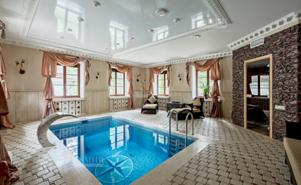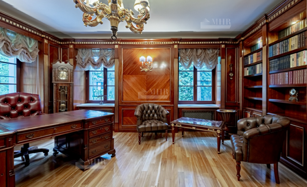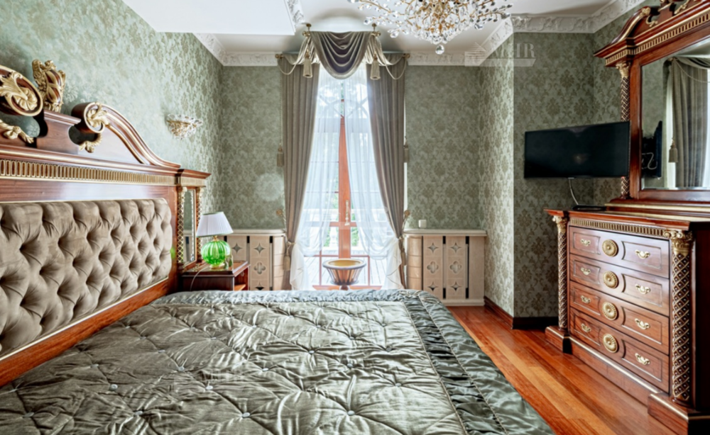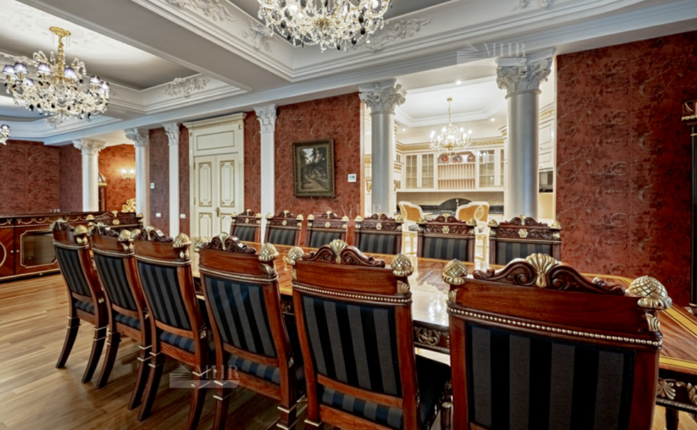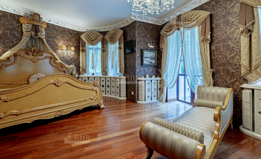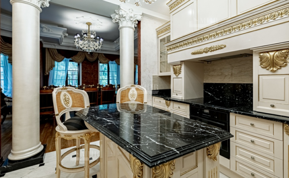 Интерьер особняка выдержан в элегантном классическом стиле с использованием натуральных и дорогих материалов.