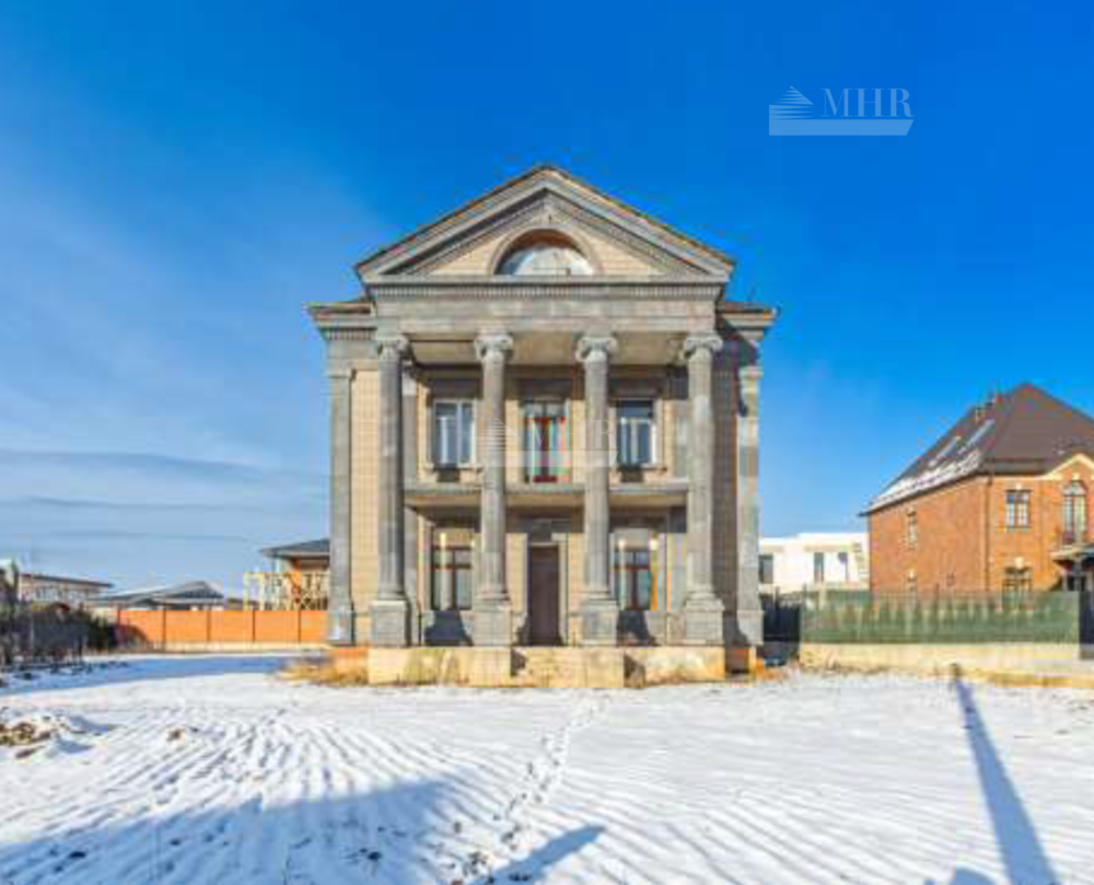 У дома великолепное расположение на возвышенности, из окон открывается прекрасный вид на лес и посёлок с красивой одинаковой стилистикой. Дом выполнен в классическом оформлении, с большим эркером и колоннами.