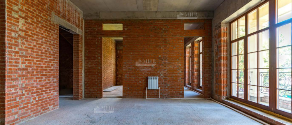 Предлагается на продажу дом под отделку в КП "Жуковка". Дом находится на самой высокой точке участка. Высота потолков: 1-й этаж – 4м., 2-й этаж – 3,85м., 3-й этаж – 3,5м. Классическая французская кровля. Бассейн (10 на 4 м). Фасад – натуральный песчаник.