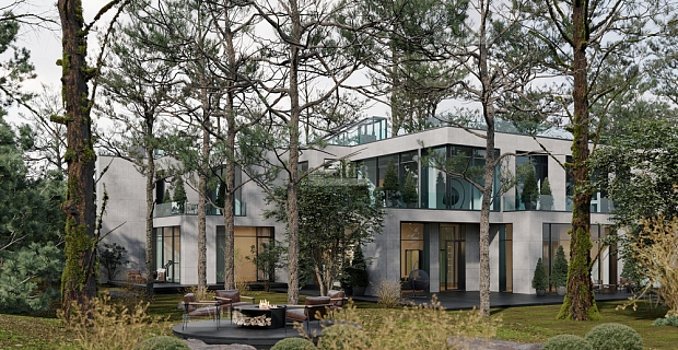 Дом расположен в готовой и полностью проданной очереди, в первой линии у леса. Продуманная и функциональная планировка. В гостиной панорамные окна с выходом на собственную террасу. Предусмотрена возможность установки  камина в зоне кухни-столовой-гостиной. Возле дома место на 2м/м.