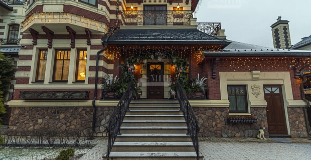 1 этаж: холл, гардеробная, кухня с кладовой, столовая, гостиная с камином, спальня, с/у с душевой, постирочная, комната для персонала с с/у и отдельным входом, гараж на 2 машины.