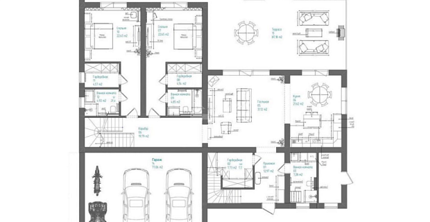 1 Этаж: прачечная, кухня, гостиная, зимний сад, кальянная, с/у.
