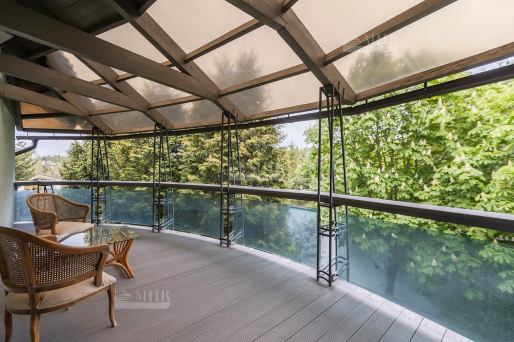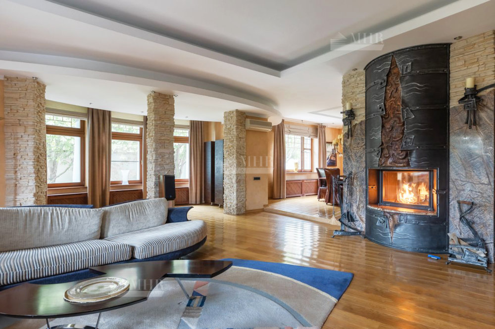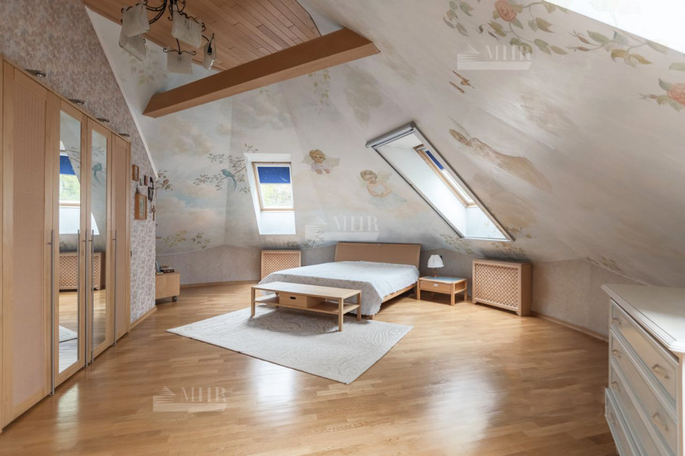 2 этаж: главная спальная с камином и выходом на малую террасу, 2 дополнительные гостевые спальни. Каждая спальня имеет отдельную ванную комнату, просторный кабинет и библиотека.