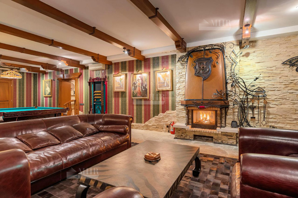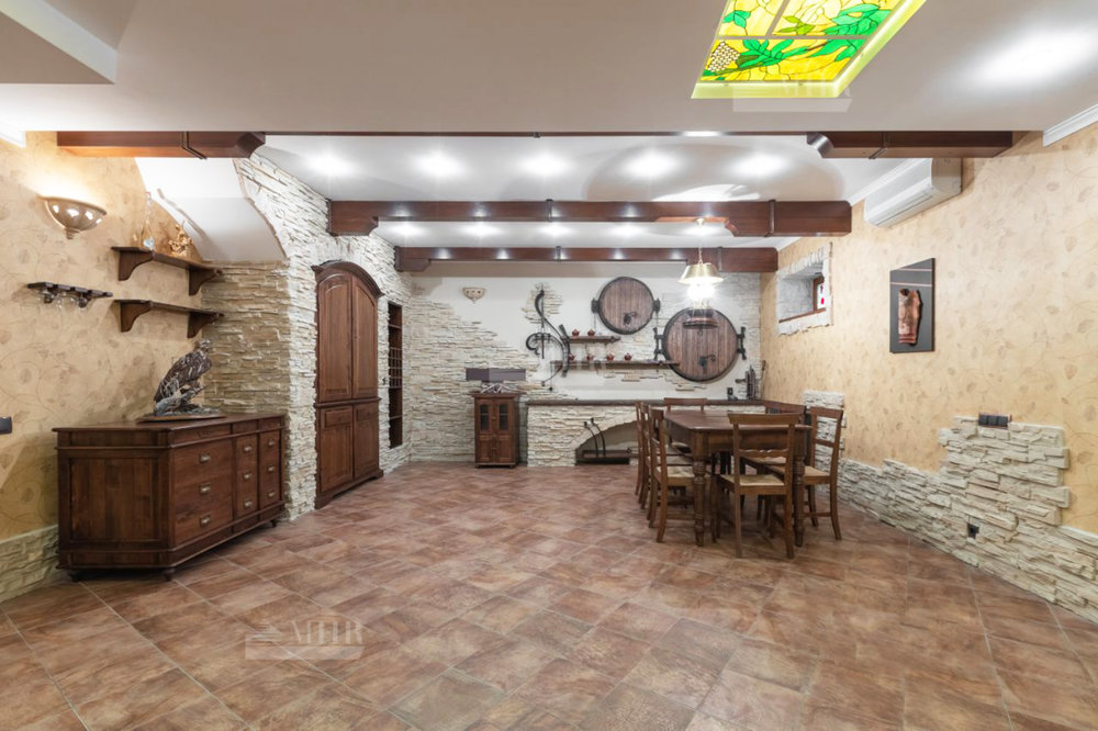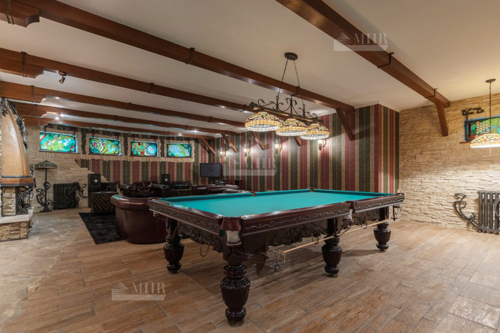 Цоколь: каминный зал в английском стиле с бильярдом, гостиная-таверна в стиле средневековья, кухня, прачечная, с/у, кладовая и сейфовая/оружейная комнаты, тех. комната управления вентиляцией, водоснабжением и комплекс фильтрации воды дома.