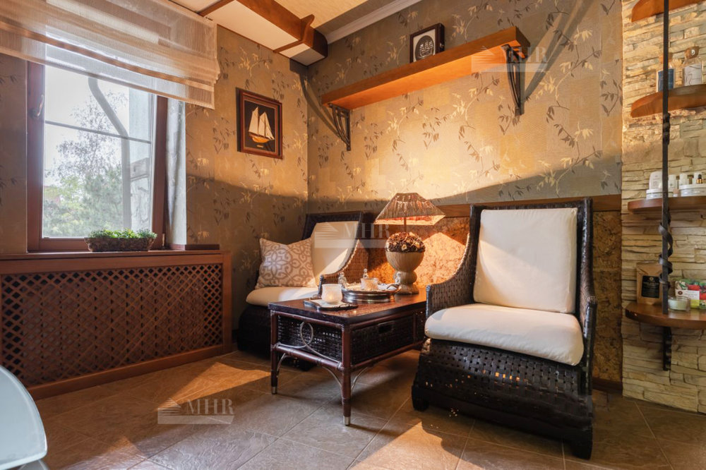 2 этаж: 1 спальня, гостиная и кухня-столовая, душевая и с/у, кабинет/кладовая комната, теплый гараж на два машиноместа. Система независимого электроснабжения резиденции (генератор и ИБП).