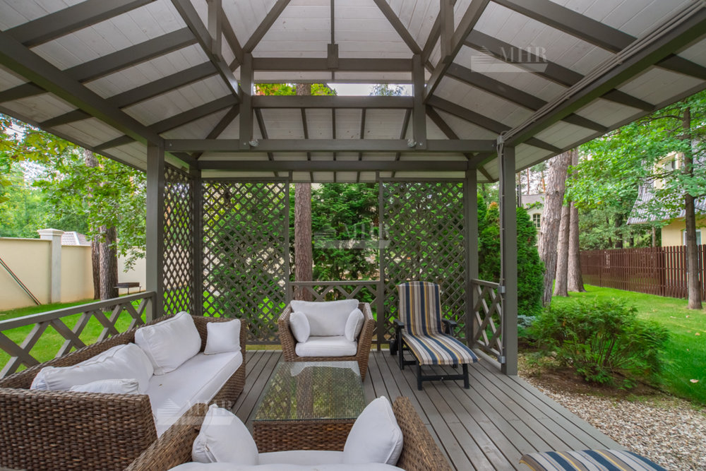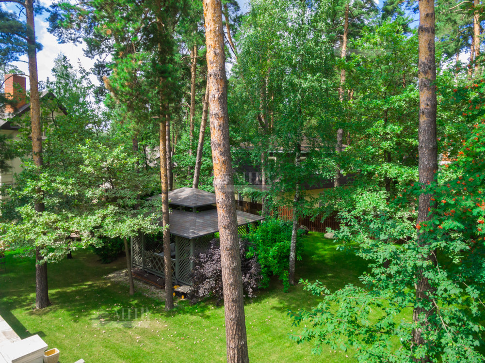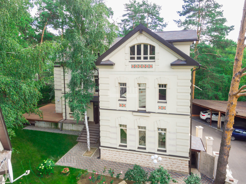 Дом находится в элитном поселке в окружении леса. В  поселке тихо и приватно. На участке растут сосны. Дом строили для себя, использовали дорогостоящие материалы.Есть блок для охраны с отдельным входом. Рядом развитая инфраструктура Горки-2, магазины, рестораны. школы, детские сады,  каток.
