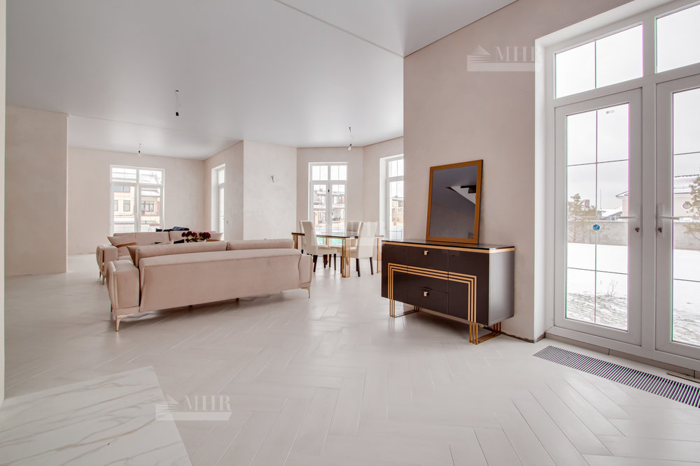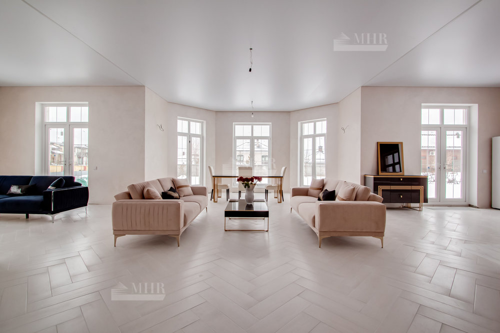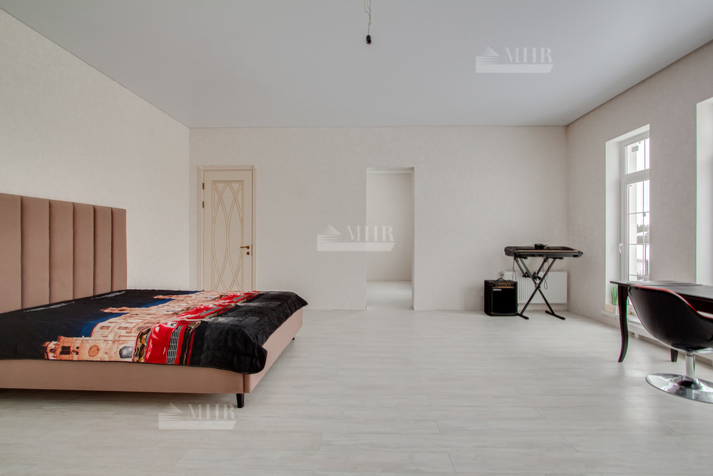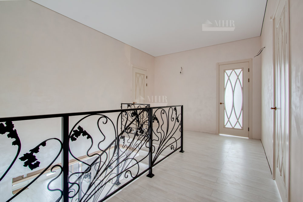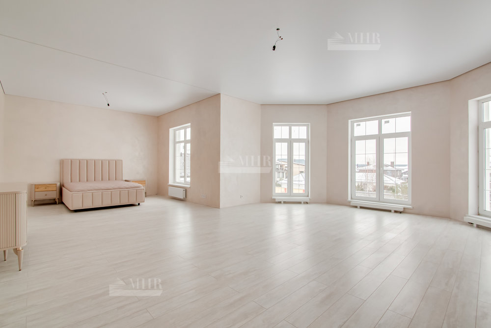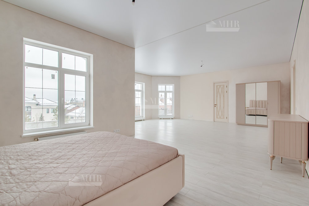 В доме 5 спален, кухня-гостиная-столовая, кабинет, 5 с/у, терраса, мансарда. Панорамные окна в французском стиле с энергосберегающими стеклопакетами.
