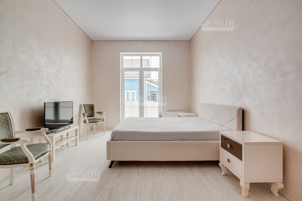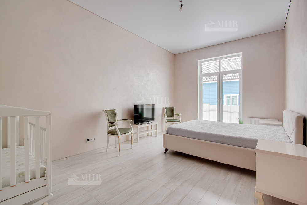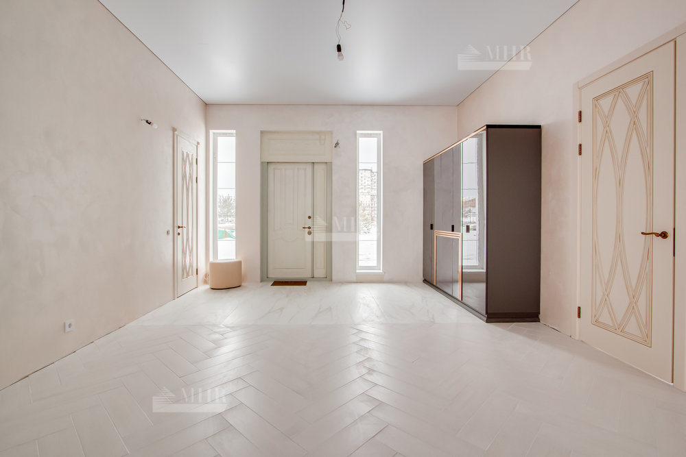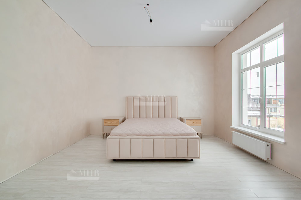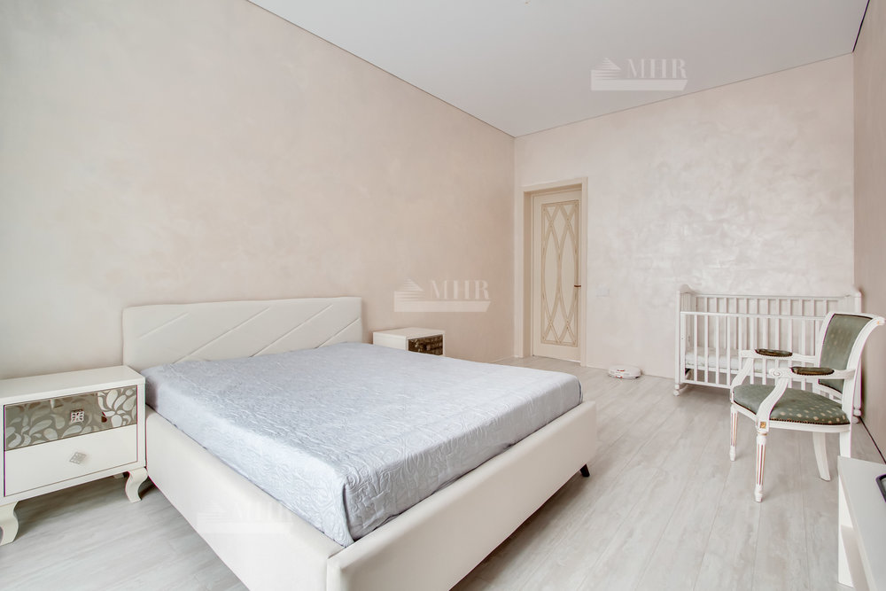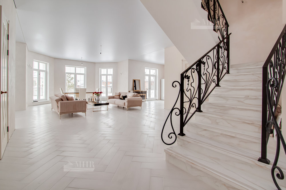 В доме 5 спален, кухня-гостиная-столовая, кабинет, 5 с/у, терраса, мансарда. Панорамные окна в французском стиле с энергосберегающими стеклопакетами.