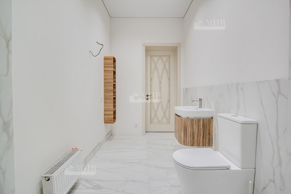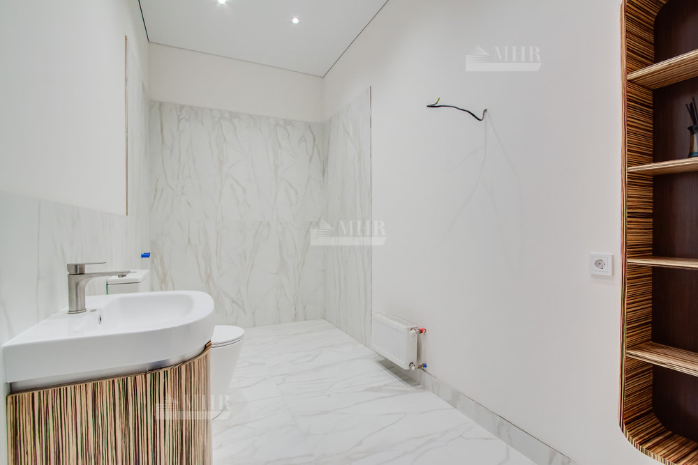 Ведутся работы по финишной отделке. Выполнены штукатурные работы, разведена электрика, отопление, сантехника, тёплый пол. Дом отапливается итальянским котлом Ферроли. Оптоволокно заведено в дом и разведено по всем комнатам. Высота потолков 3,3 м. Стены кирпич, монолитное перекрытие и лестница, мягкая кровля. Есть возможность установить сауну и камин. Все коммуникации центральные. Собственность с 2021 г.