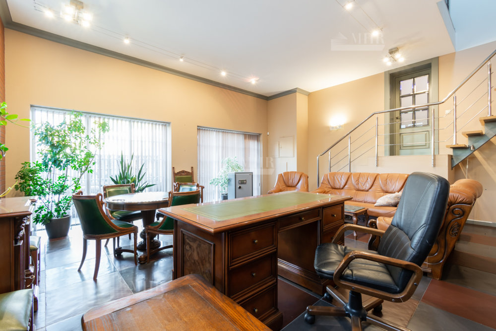 1 этаж: гостиная со вторым светом, кухня, столовая, гостевой с/у, кабинет с комнатой отдыха на втором этаже, спальня с с/у;