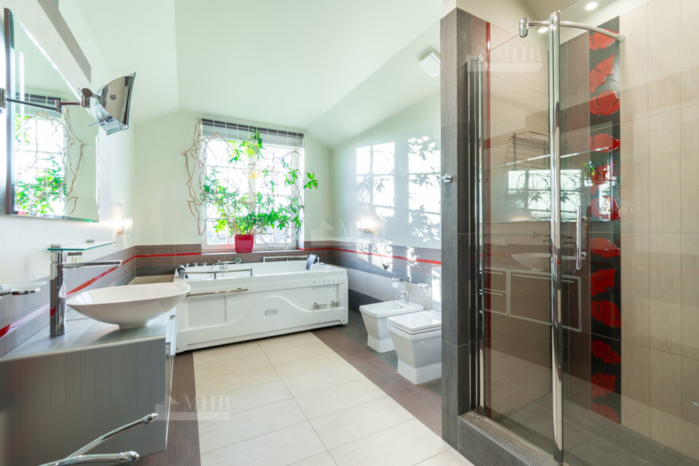 Выполнен качественный ландшафтный дизайн с системой автополива. На участке построен гараж с квартирой для персонала и помещением для садовой техники.
