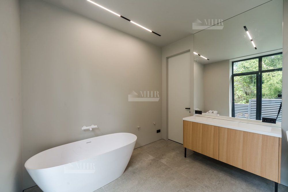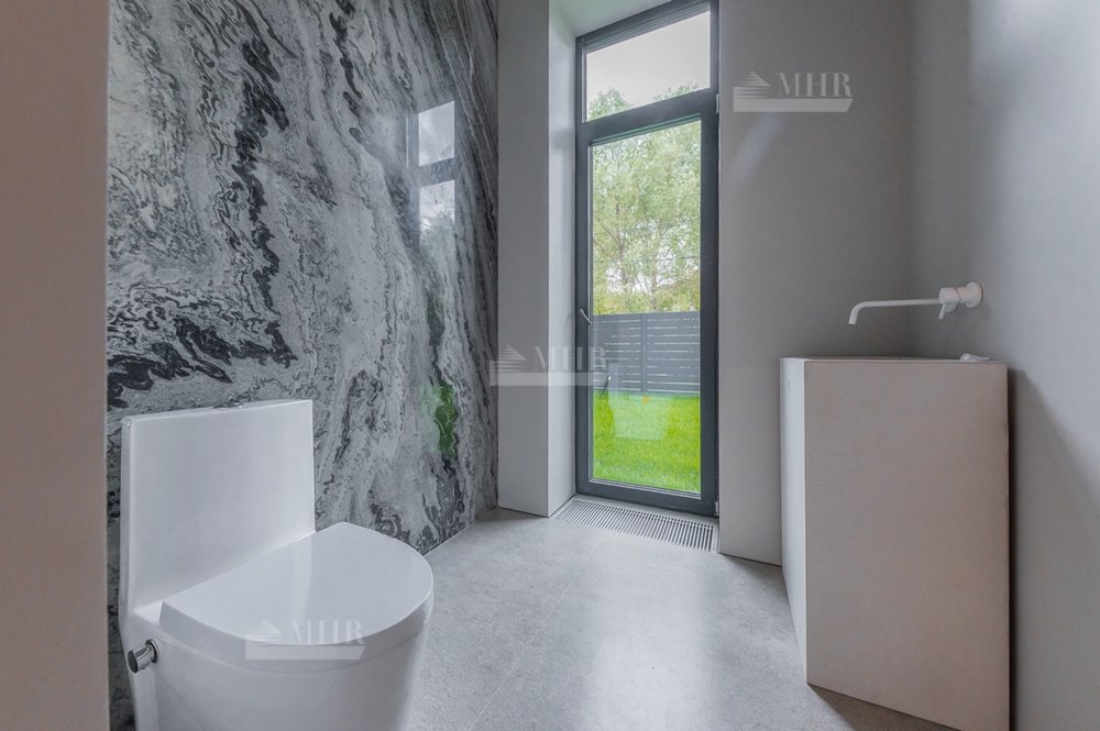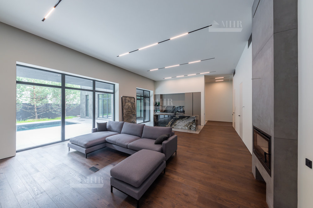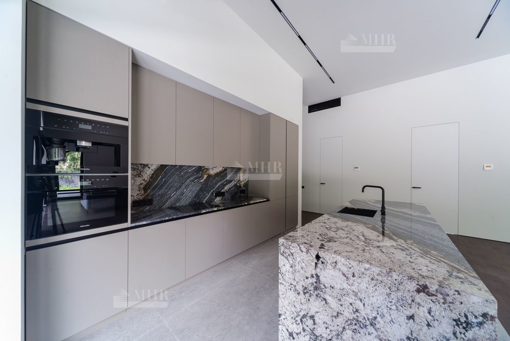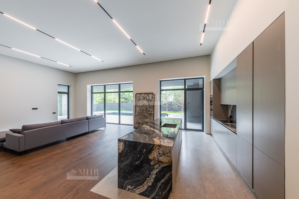 Дом частично меблирован (кухня укомплектована техникой Miele, в отделке использованы слэбы из мрамора и гранита, полы - инженерная доска дуб, установлена  приточно-вытяжная вентиляция и видеонаблюдение)