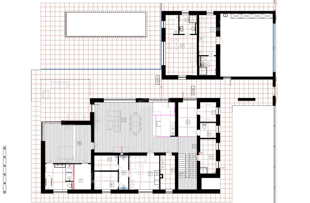 В доме 5 спален, квартира для персонала, гостевой блок для родителей с кухней и су, спа зона с хаммам и сауной.