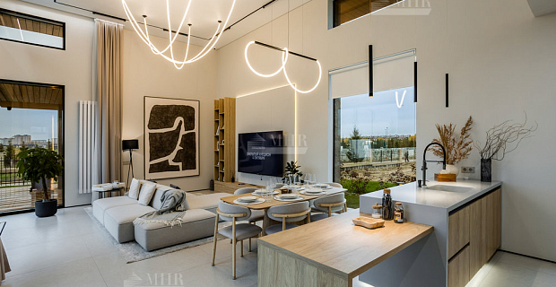В интерьерах, отделанных состаренным деревом, жизнь замедляется до минимума. Бассейн продолжает спа-зону. Особые панорамные окна раскрываются целиком, и бассейн с террасой объединяются, превращаясь в территорию абсолютного расслабления.