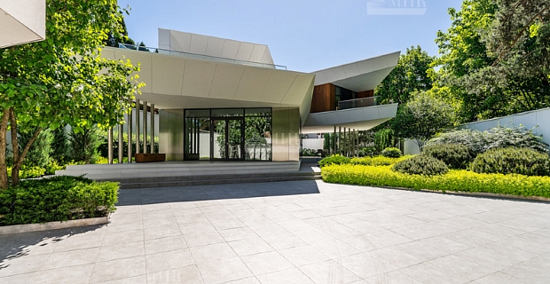 Просторная парадная кухня с двумя широкими «островами» располагается по соседству со столовой. К кухне примыкает стеклянный эркер с зоной для завтраков. Есть и черновая кухня — рабочее место шефа, более функциональное и оснащенное профессиональной техникой.
