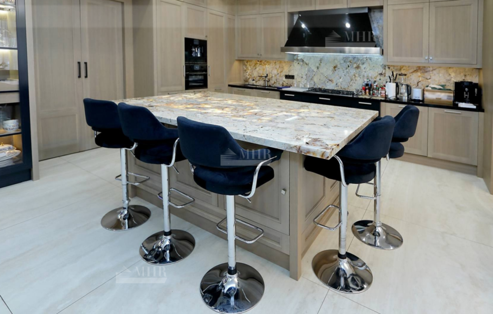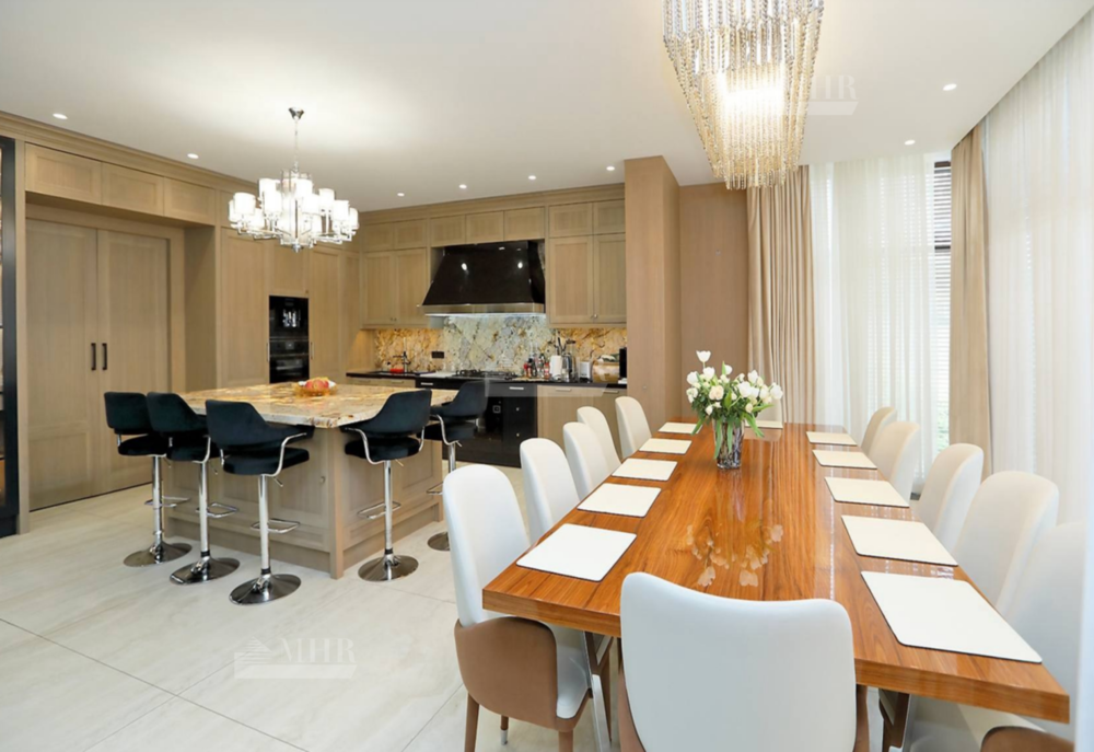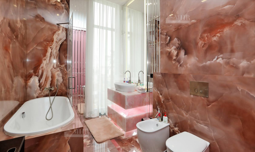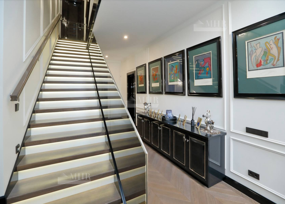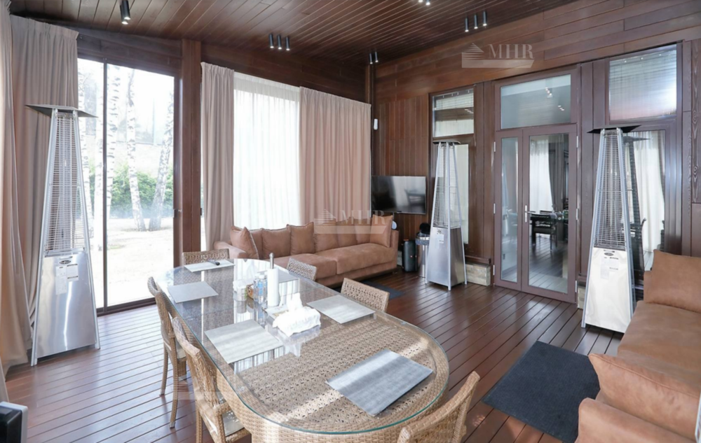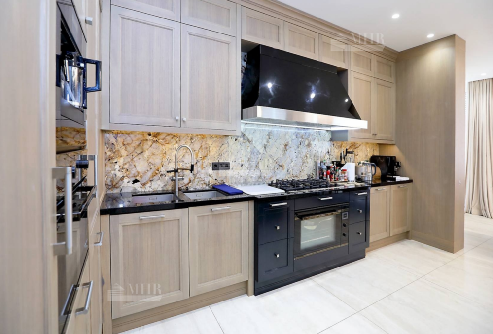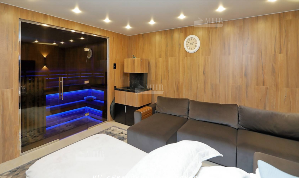 В отделке дома использованы натуральные дорогостоящие материалы, мебель, светильники и техника - всё импортного производства (Minotti, Baccarat).