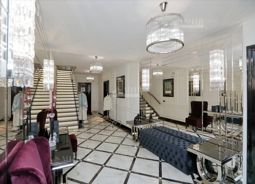 1й этаж: гараж на 2 м/м с комнатой хранения, блок для персонала (2 спальни + кухня) с отдельным входом, холл, гардеробная, холодильная комната для хранения изделий из меха, постирочная, спа зона с собственной кухней, сауной, гидромассажной ванной, льдогенератором и комнатой отдыха, гостевой с/у;