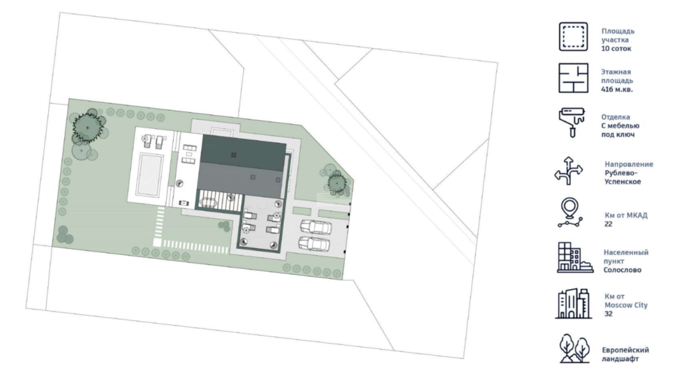 Дом находится в самом сердце Рублево-Успенском шоссе. Это место по праву является одним из самых привлекательных для проживания и радует жителей как богатой инфраструктурой, так и потрясающей природой. Современная, трехуровневая вилла. Проект обязательно понравится ценителям дизайна и современных тенденций.