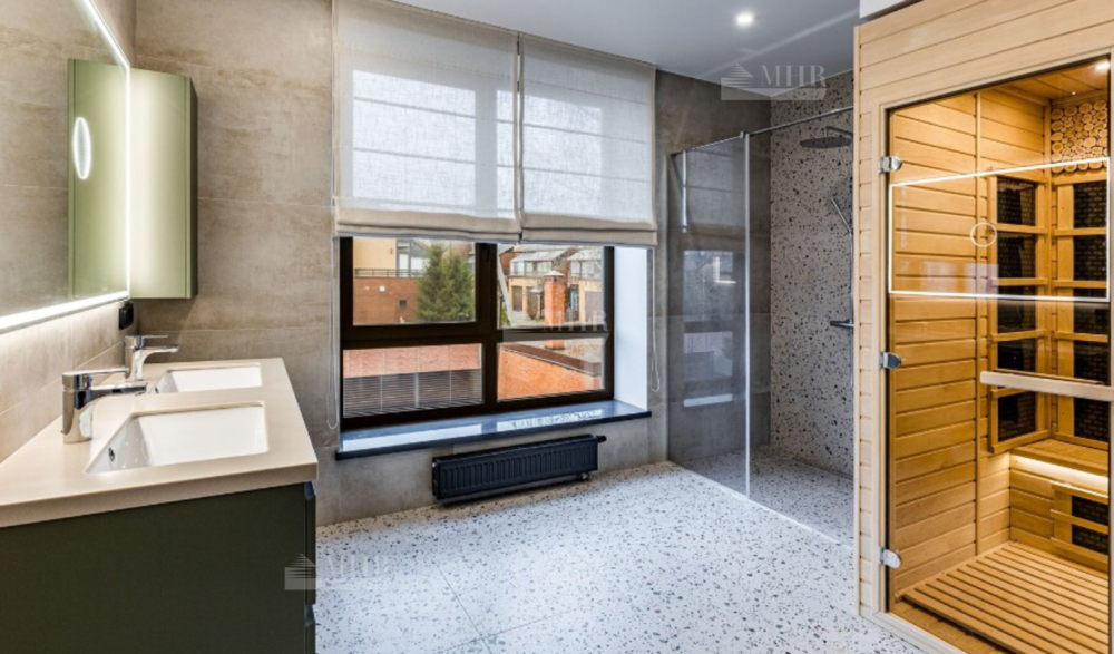 2-этаж: мастер-спальня с гардеробной и с/у( сауна, душ), спальня с выходом на террасу и с/у с ванной, кабинет-библиотека, постирочная, кладовая.